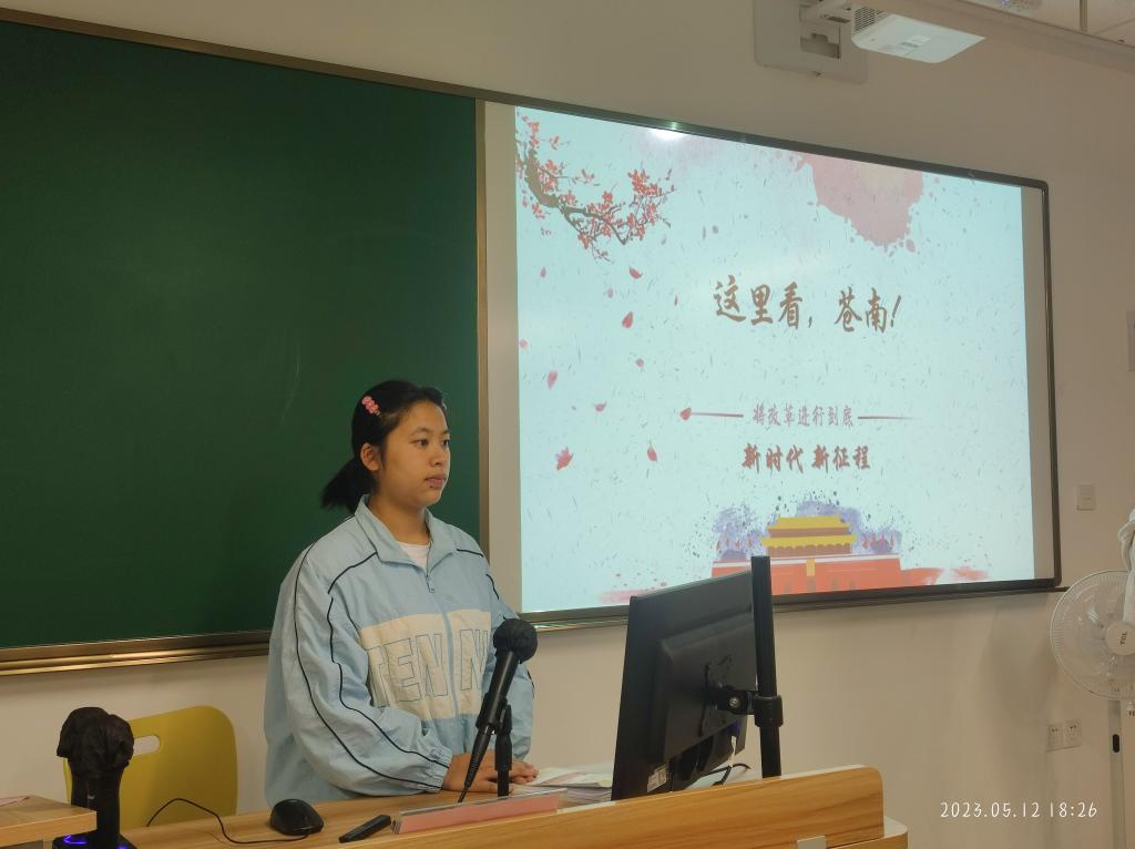 深入了解温州苍南发展历程、未来展望,党建服务与人才培训中心于2023年5月12日晚18:30于滨海校区2402开展了以“这里看,苍南”为主题的高峰论坛活动。主讲人雍欣怡以朱程的故事为引,接着介绍了苍南的地理位置、伟大历程、具体措施、未来展望。