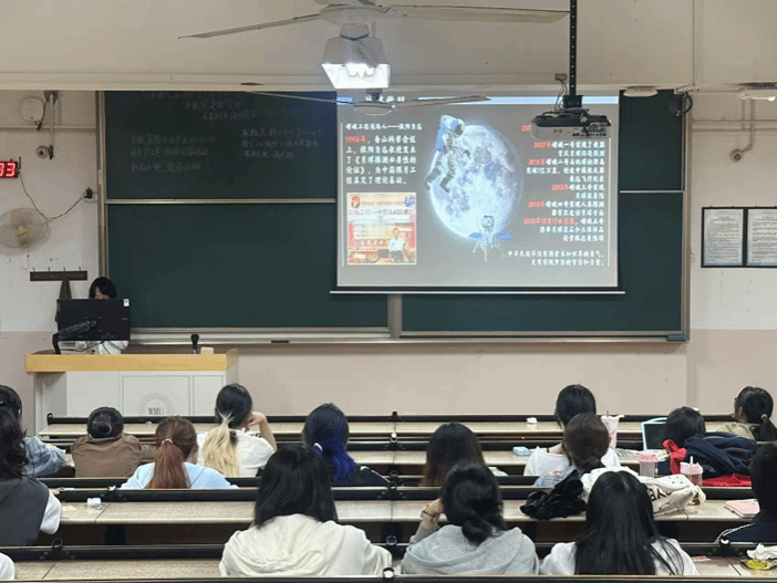 主讲人通过一个视频向我们展示了我国探月工程的发展历程和重大成就。“嫦娥”一号奔月途中三次轨道修正,误差小于0.01°,精准技术震惊世界,被誉为“太空芭蕾”;“嫦娥”四号首次月背软着陆,面对中继星燃料危机,团队凭精湛技术完成16次轨道调整;“嫦娥”五号采样封装系统经-180℃真空模拟反复测试优化,成功研制出能抗极端环境的系统。这些成就背后是航天人的付出努力,体现中国航天人破解38万公里技术密码的精湛技艺与卓越智慧。