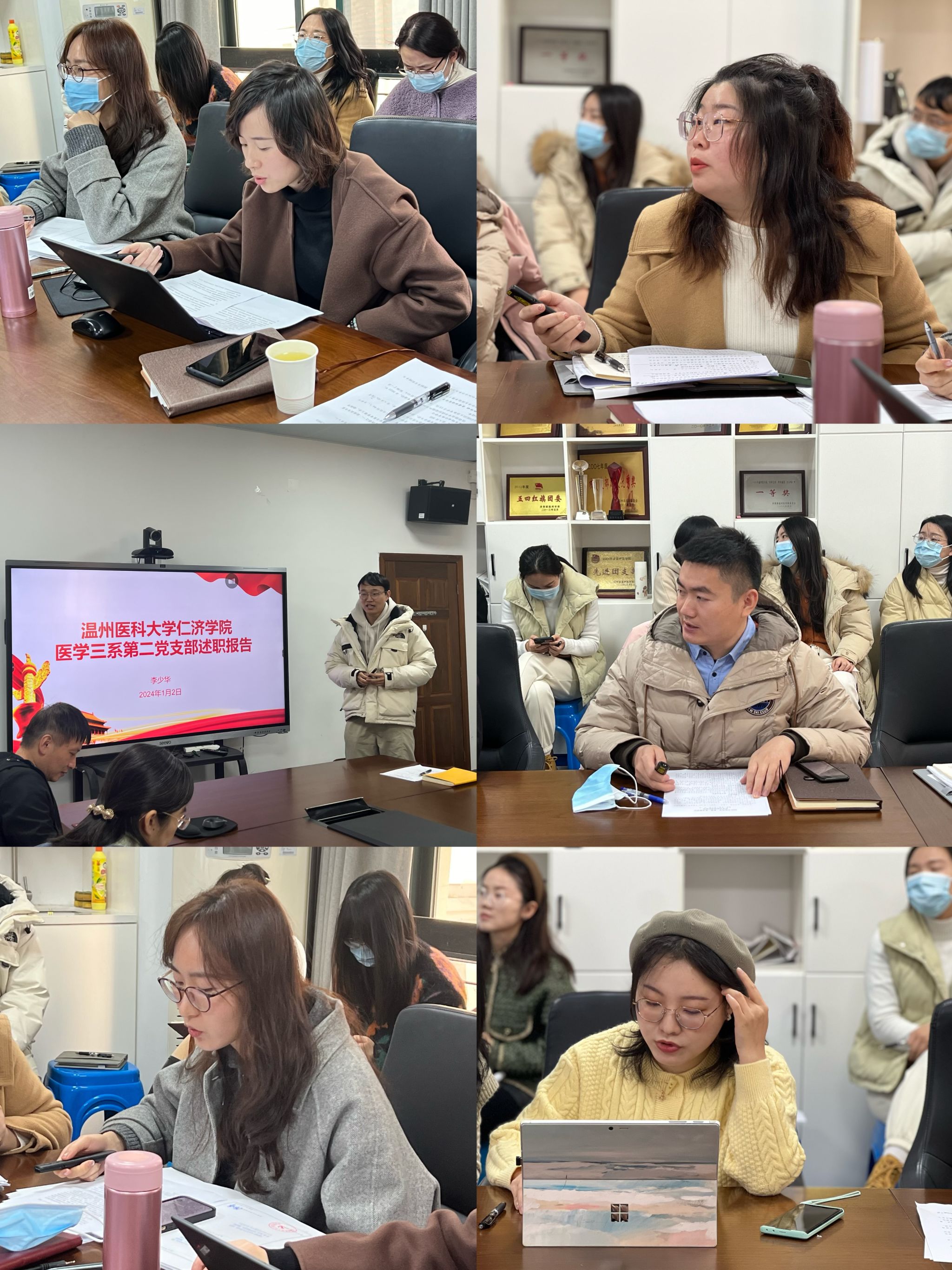 1月2日,仁济学院在茶山7A113会议室召开党建工作会议暨支部书记述职评议会,学院全体党支部书记及相关党务干部参加会议,党委书记陈乃车、党委副书记姜旭英出席会议,会议由党委副书记刘洁主持。