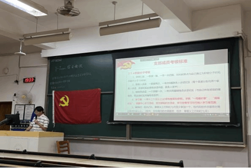 学习会落下帷幕,随之进行了党支部的组织生活会,支部成员代表依次上台汇报上学期的工作总结、工作反思以及本学期的工作计划。最后,郑黄杰同志带领大家重温支部规章制度和支部成员考核标准。