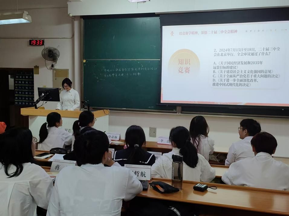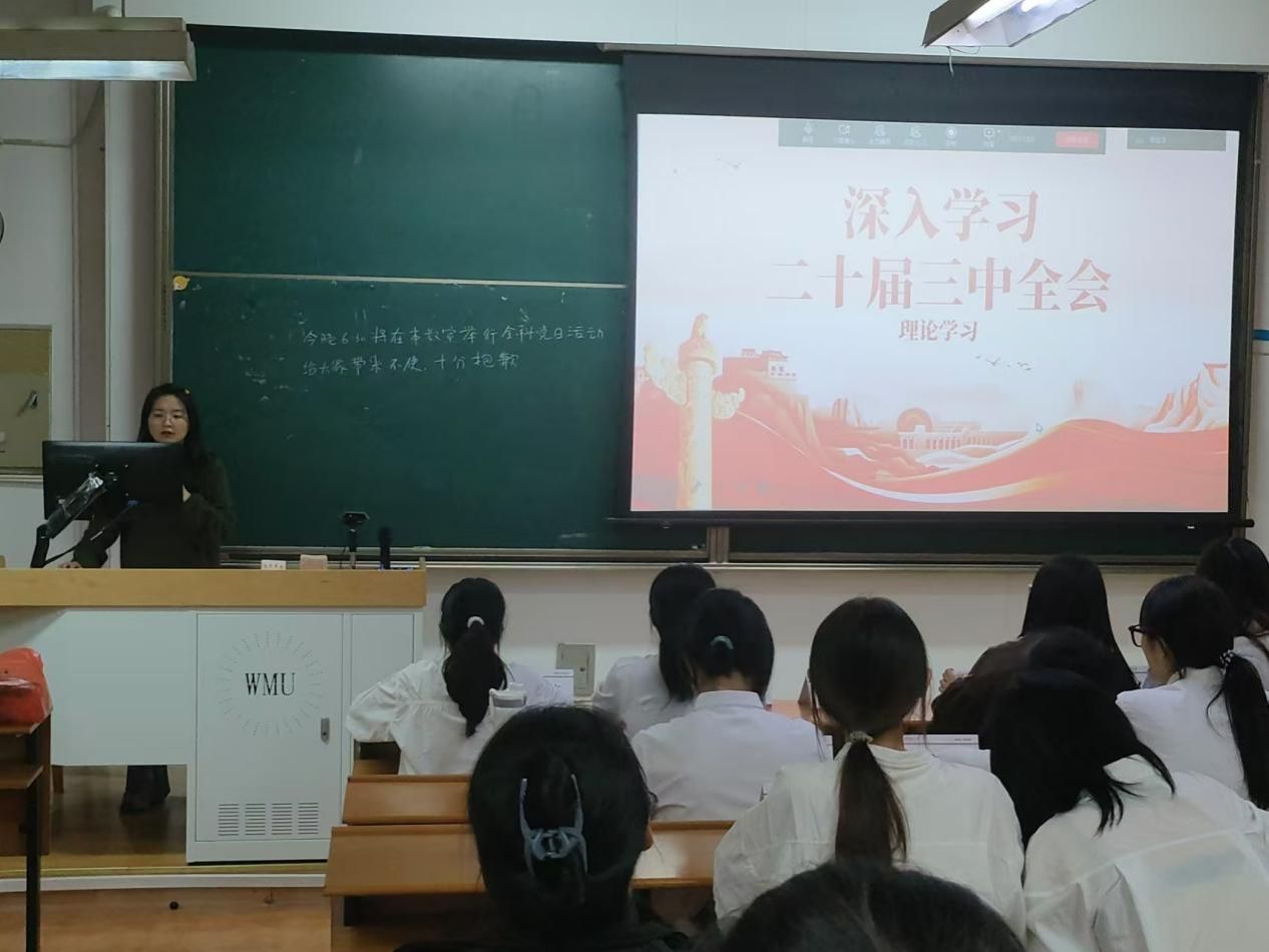 10月29日晚18:30,三亿医学一系第一党支部于茶山7AJ101教室开展了以“深入学习党的二十届三中全会精神,强化党纪学习教育”为主题的党日活动,旨在深化党员的理论学习,提升党性修养,本次党日活动应到21人,实到20人,1名同志请假,会议由医学一系第一党支部书记田丹同志主持。