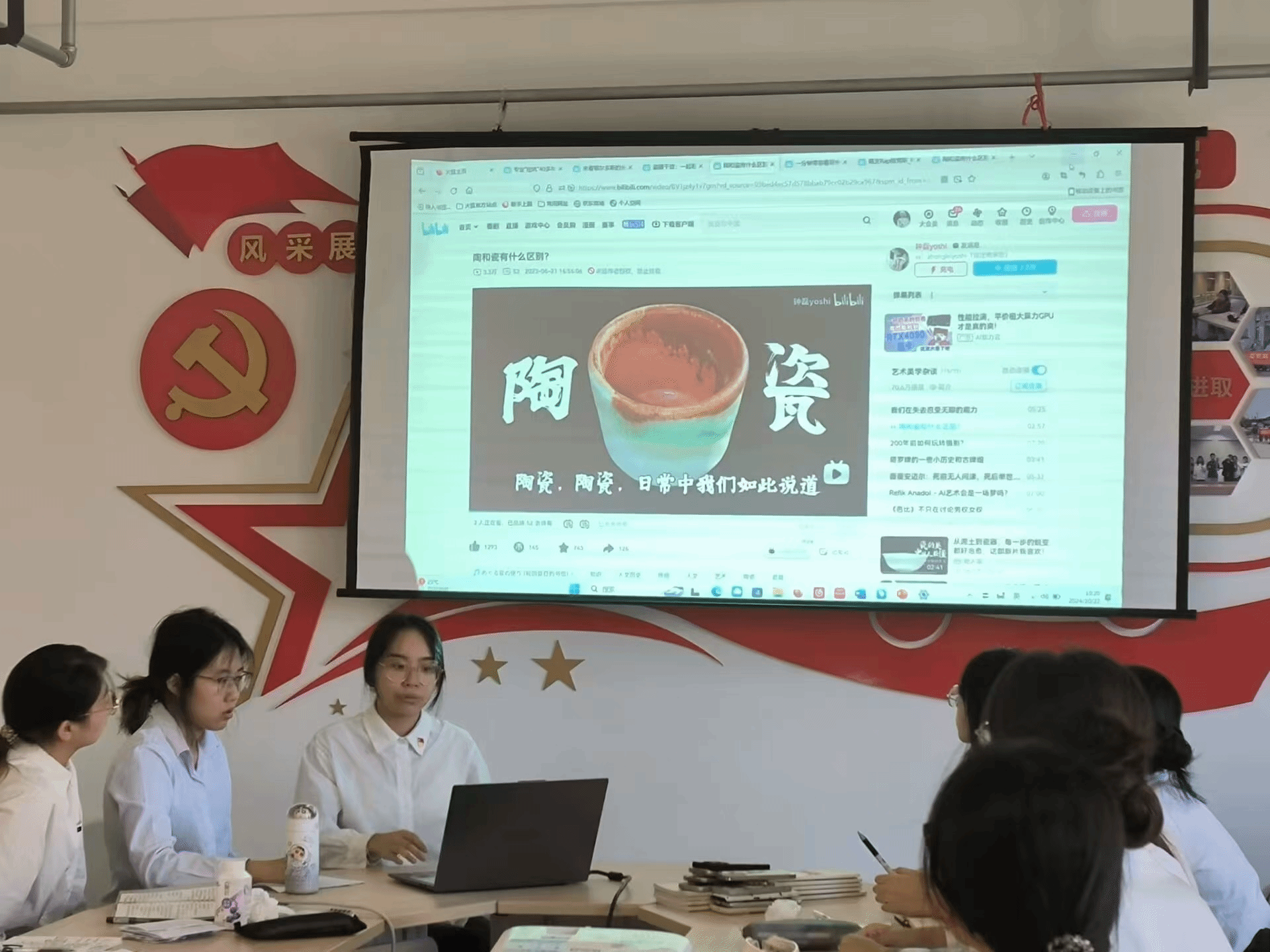 会上,第一小组以创新引领,绿造未来”为主题,讲述光伏发电的起源、必要性和创新点点明光伏发电作为绿色能源的璀璨明星,正以创新之力重塑能源版图,为地球披上绿装。光伏发电不仅缓解了化石燃料之急,引领着未来发展的潮流,彰显了绿色发展理念。青年一代需明白创新是引领发展的第一动力不断深化绿色科技研究,积极参与社会公益活动,增强公众环保意识,共同守护地球家园,共创一个更加清洁、明亮的明天。第二小组以“瓷器为窗笼,聆听文化秘语”为主题,带领同志们瓷器的起源和发展历程,讲述了陶与瓷的区别主要在于温度、击打的声响和表面光滑程度,强调瓷器作为中华优秀传统文化瑰宝与中华文明发展密不可分瓷器的每一抹色彩、每一缕纹饰,皆承载着厚重的历史与文化。作为大学生,我们自身要积极关注瓷器文化的传播与交流,利用社交媒体等平台,向世界展示中国瓷器的独特魅力,促进不同文化之间的相互理解和尊重让瓷器艺术在新时代焕发新的光彩,成为连接过去与未来的桥梁。