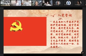 此次答辩分为入党宣誓、发展答辩、现场提问三项议程。会议伊始,全体同志起立面向党旗,右手举拳,在领誓人卢沈婕同志的带领下庄严宣读入党誓词。入党誓词是每位党员对党和人民作出的庄严承诺,中国共产党人用鲜血和生命铸就的铮铮誓言。