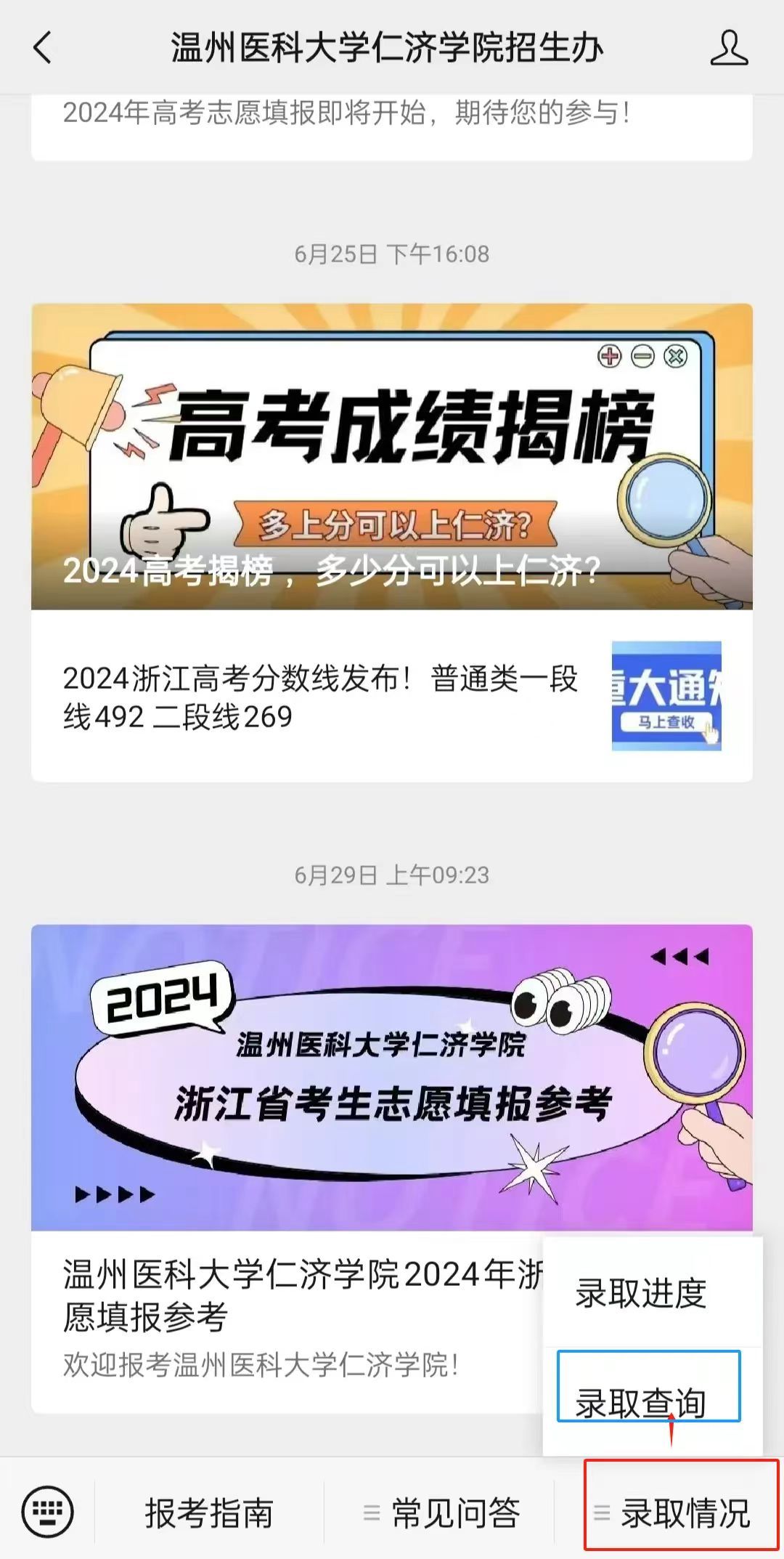 考生可登录我校招生官网或通过招生公众号,凭姓名和准考证号查询录取情况。具体操作如下: