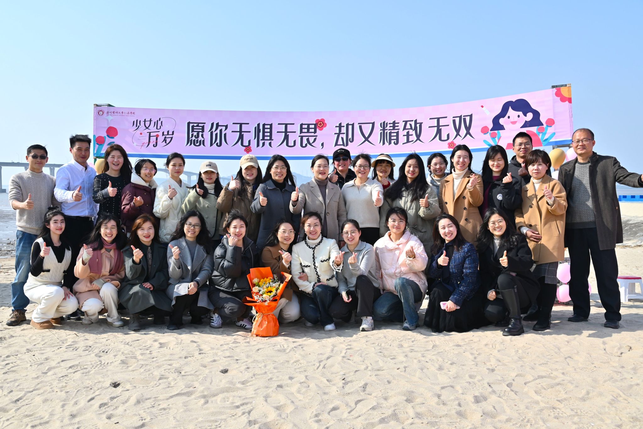 3月8日下午,暖阳高照,海风习习,在第114个国际妇女节来临之际,仁济学院工会和妇联联合为学院女教职工组织开展了“芳华悦己· 向美而生”主题系列活动。本次活动特定于洞头岛同心公园开展,碧海蓝天,金沙逐浪,仁济学院女教职工围坐一圈,天幕下传来阵阵欢声笑语。学院党委书记彭红雷,纪委书记林体排,党委副书记姜旭英、张立康以及学院40余位女教职工参加活动。
