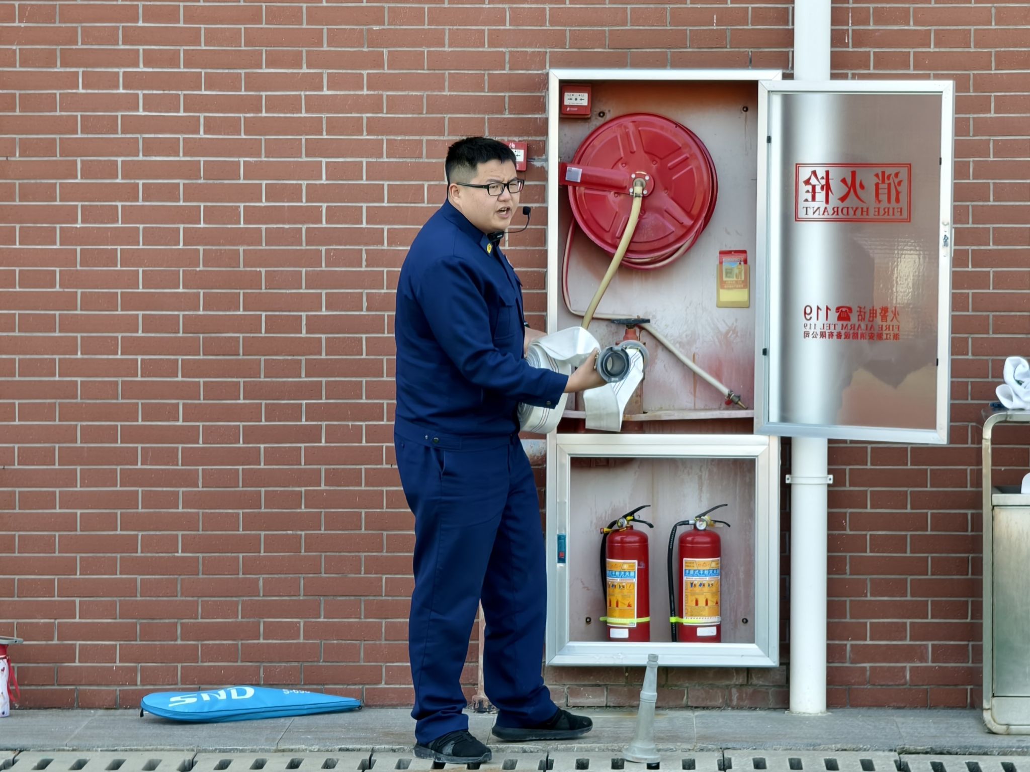 灭火环节中,大家根据消防培训的要点,掌握使用灭火器的关键要领,在消防官兵指导下,按照“提、拉、握、压”关键四步骤稳、准、狠扑灭火源。