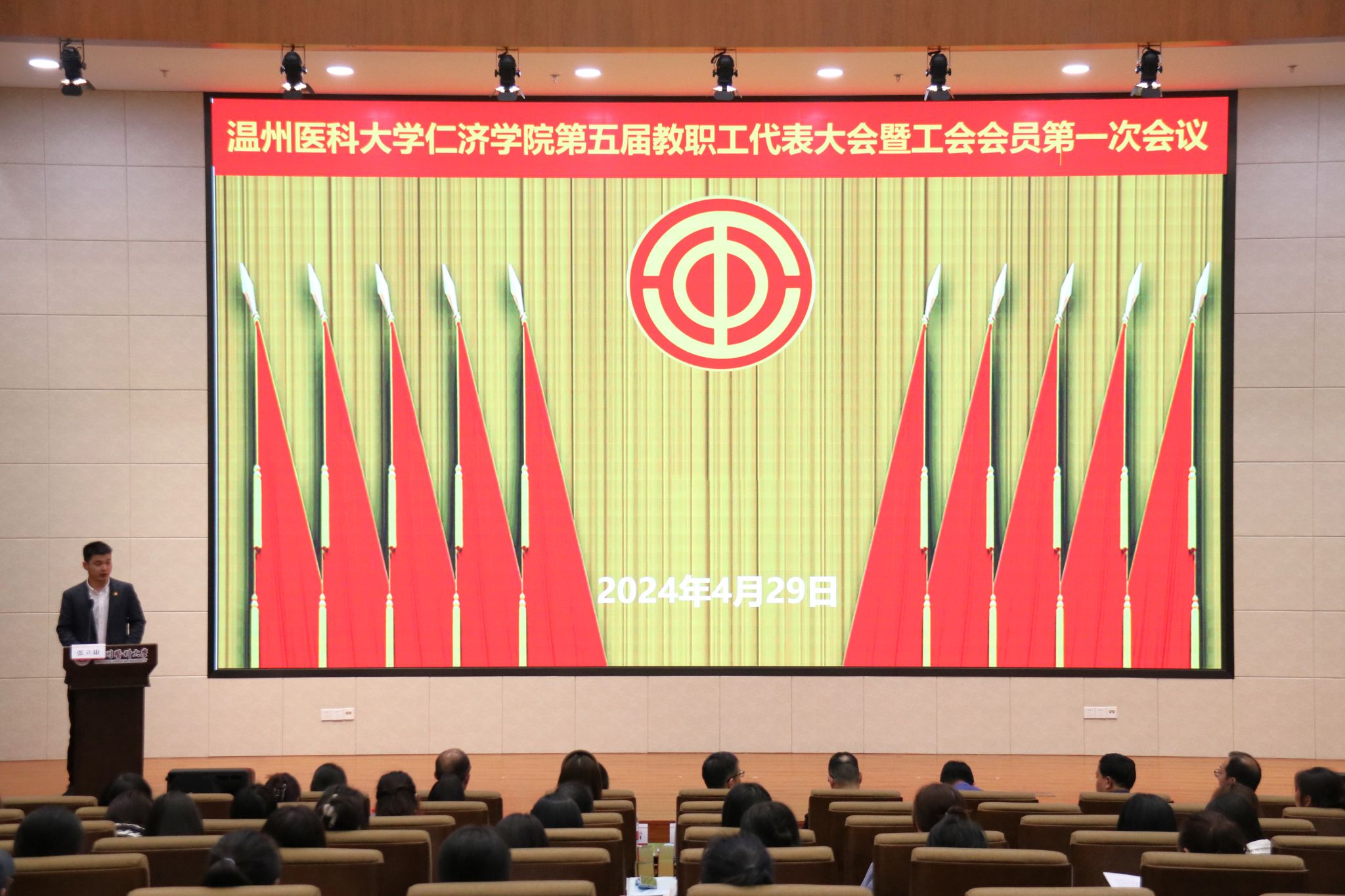 大会在庄严的国歌声中拉开序幕。金理奏代表校工会对大会的召开表示热烈祝贺,对学院2023年在党的建设、人才培养、内涵建设等方面取得的成绩以及院第四届工会委员会在推进职工民主管理、凝聚仁济职工力量中起到的积极作用给予肯定,并对即将产生的新一届院工会委员会提出要求,希望学院工会继续发挥桥梁和纽带作用,夯实群众基础,积极主动参与民主管理,维护好和解决好职工最直接最现实的利益问题,谱写工会工作新篇章。
