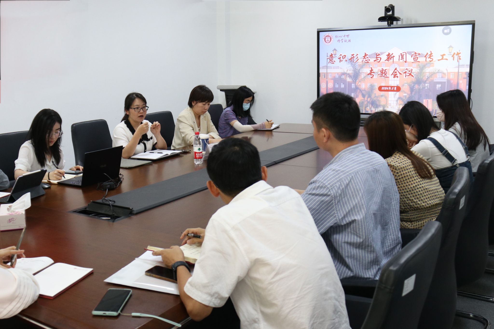 会上,新闻中心通报了学院开学初新闻宣传工作总体情况及各部门、各学生组织工作完成情况,传达了新闻宣传平台审批操作流程,各部门负责人汇报了开学初以来意识形态工作情况、新闻宣传工作中的难点与下一步工作的具体方向与做法。