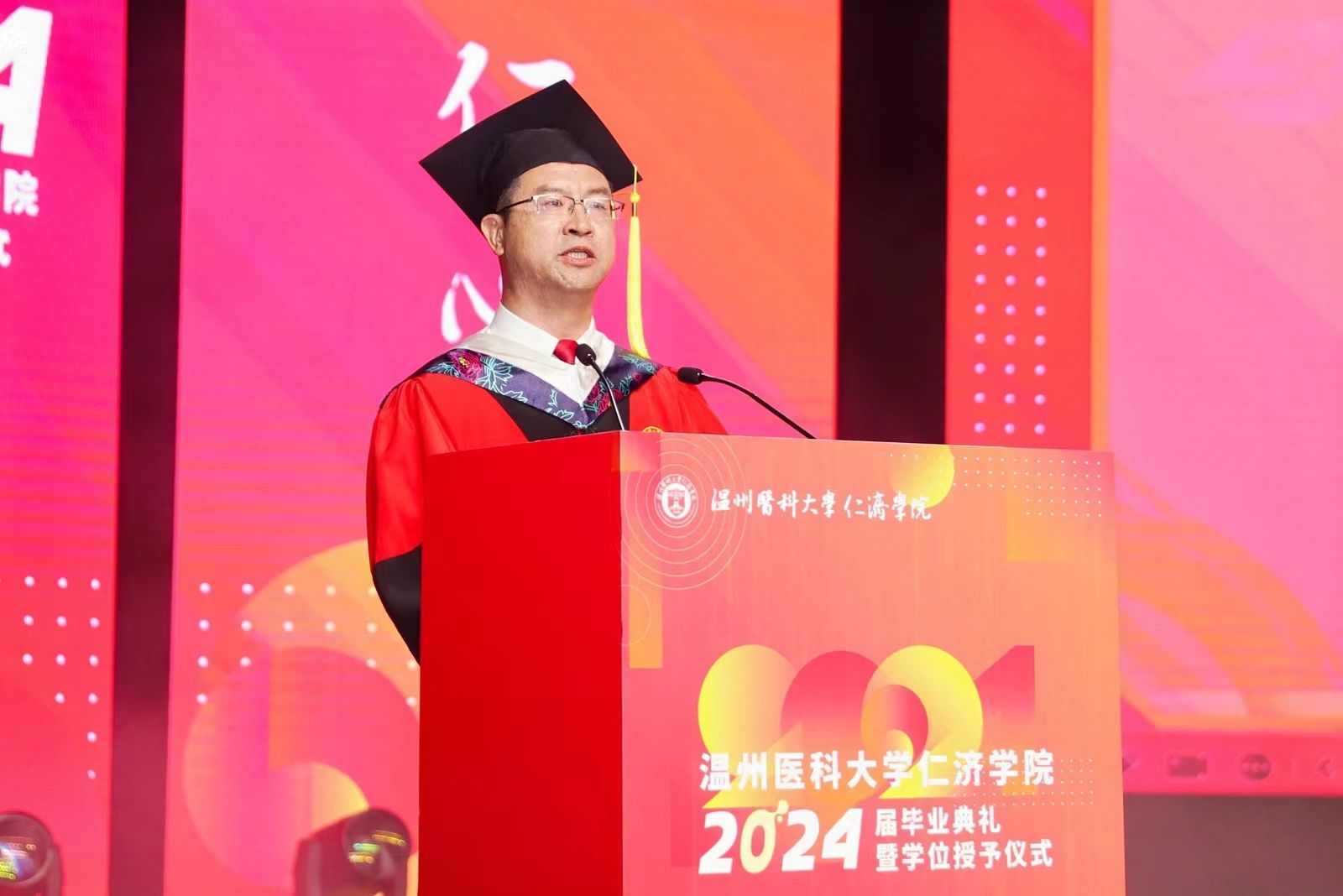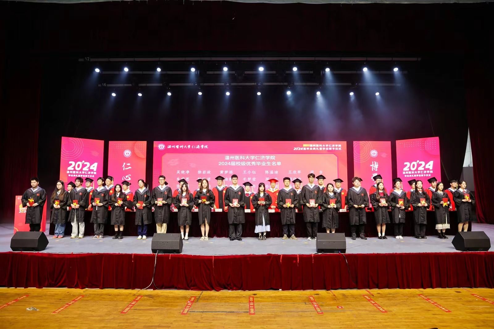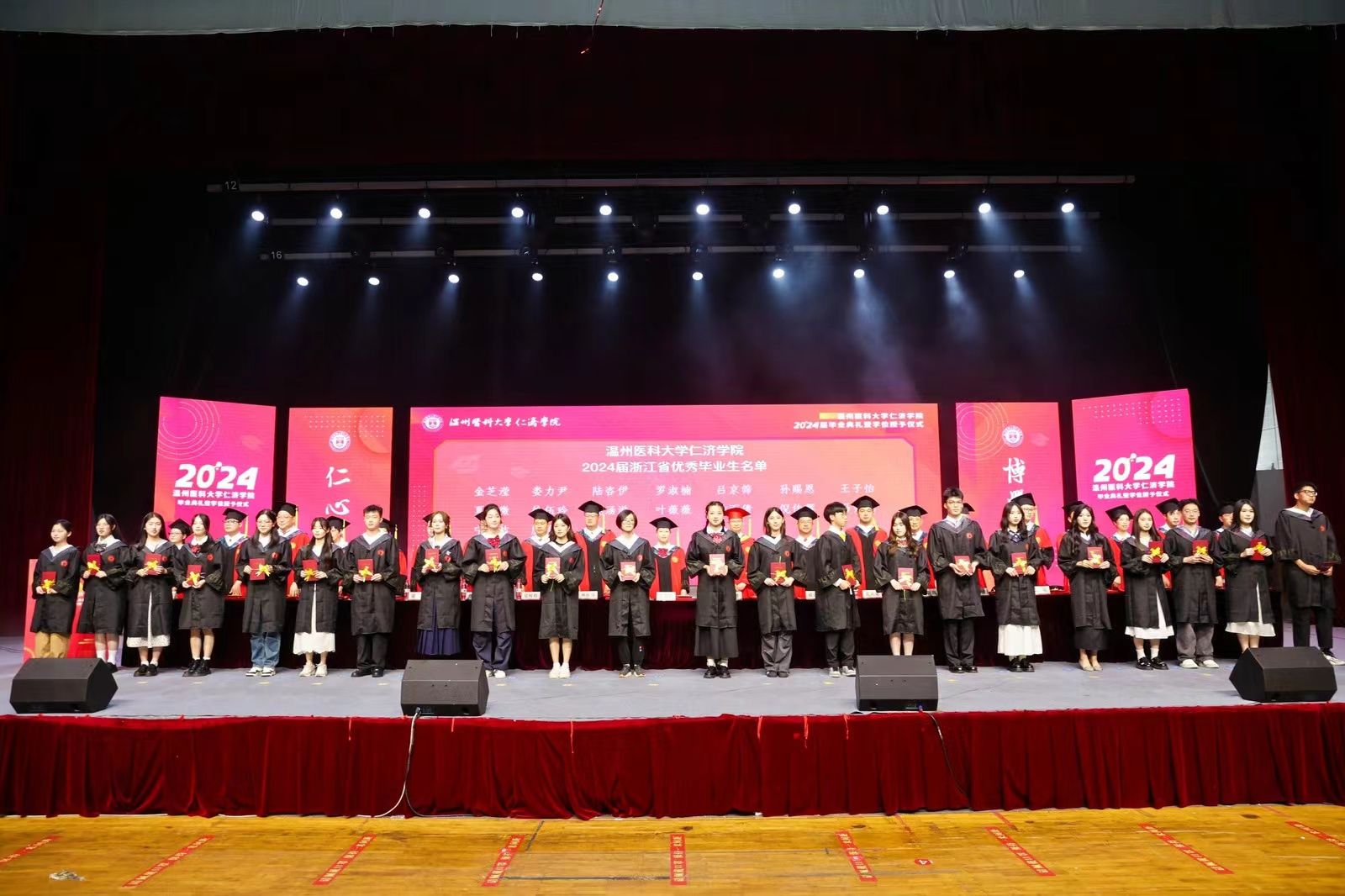 典礼上表彰了44位省级优秀毕业生和171位校级优秀毕业生,并为校友联络员颁发聘书。国家奖学金获得者、浙江省优秀毕业生徐伍玲上台领誓,全体同学重温《医学生誓言》,不忘学医初衷,牢记“健康所系、性命相托”的职责使命。