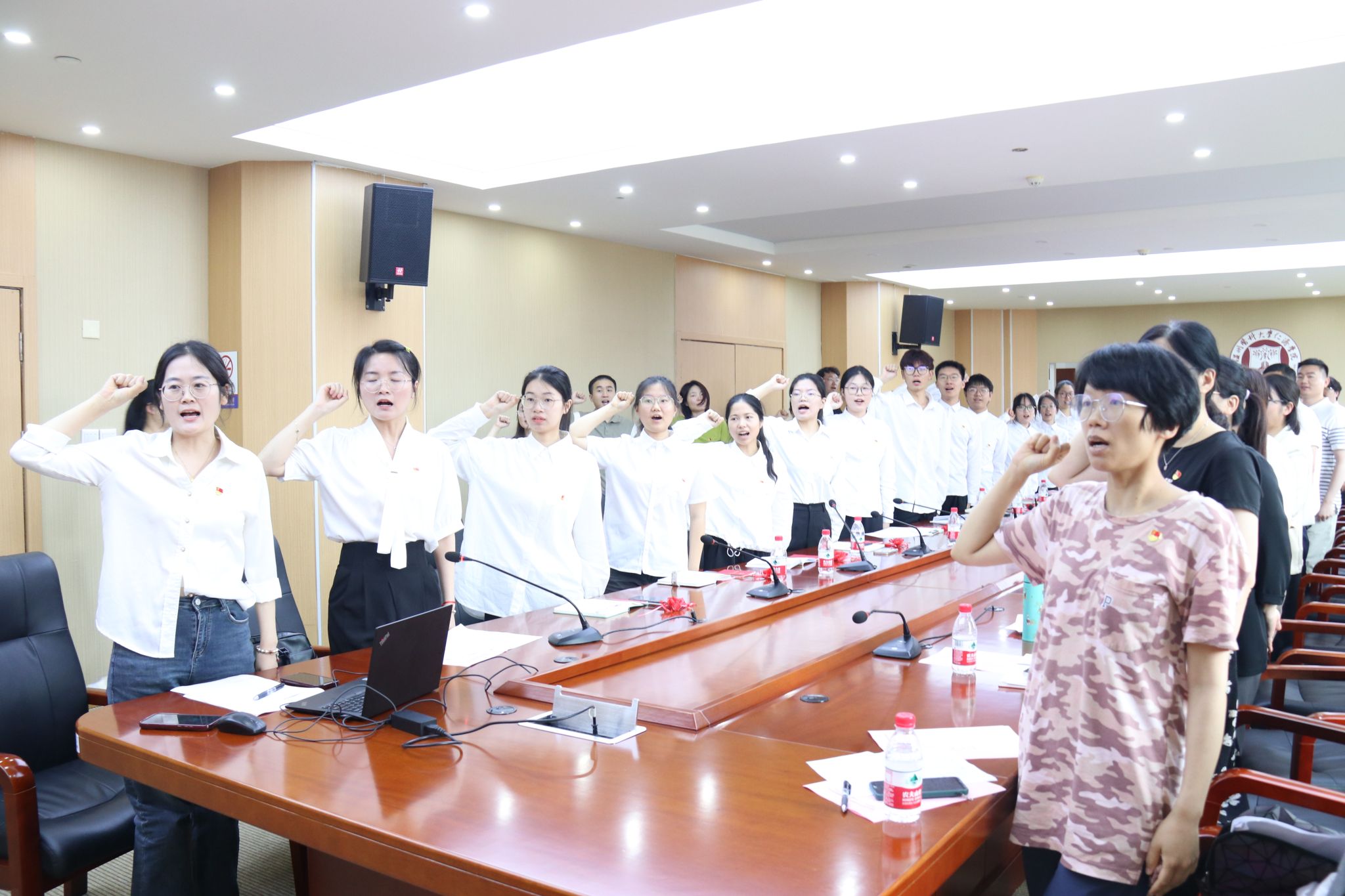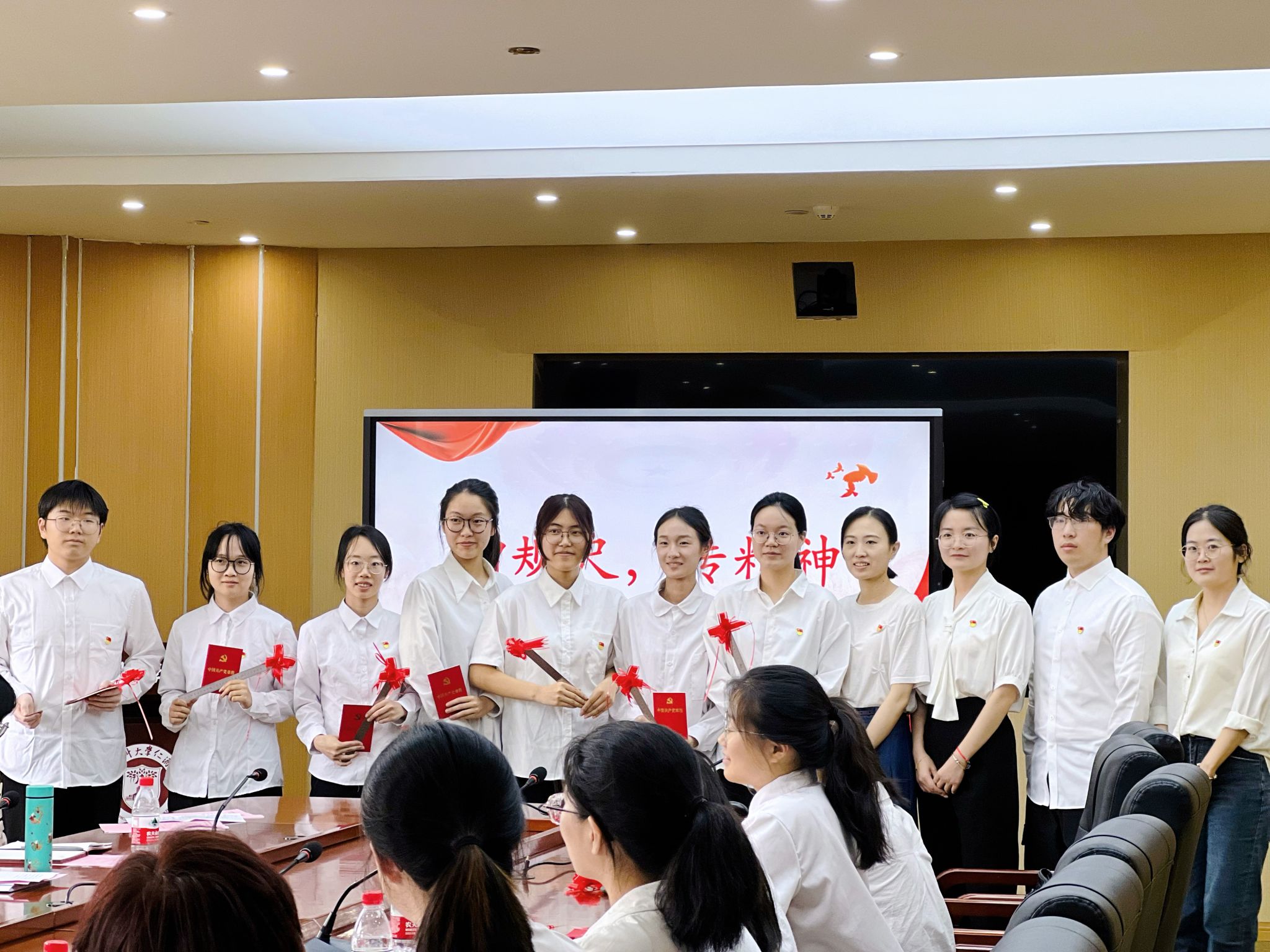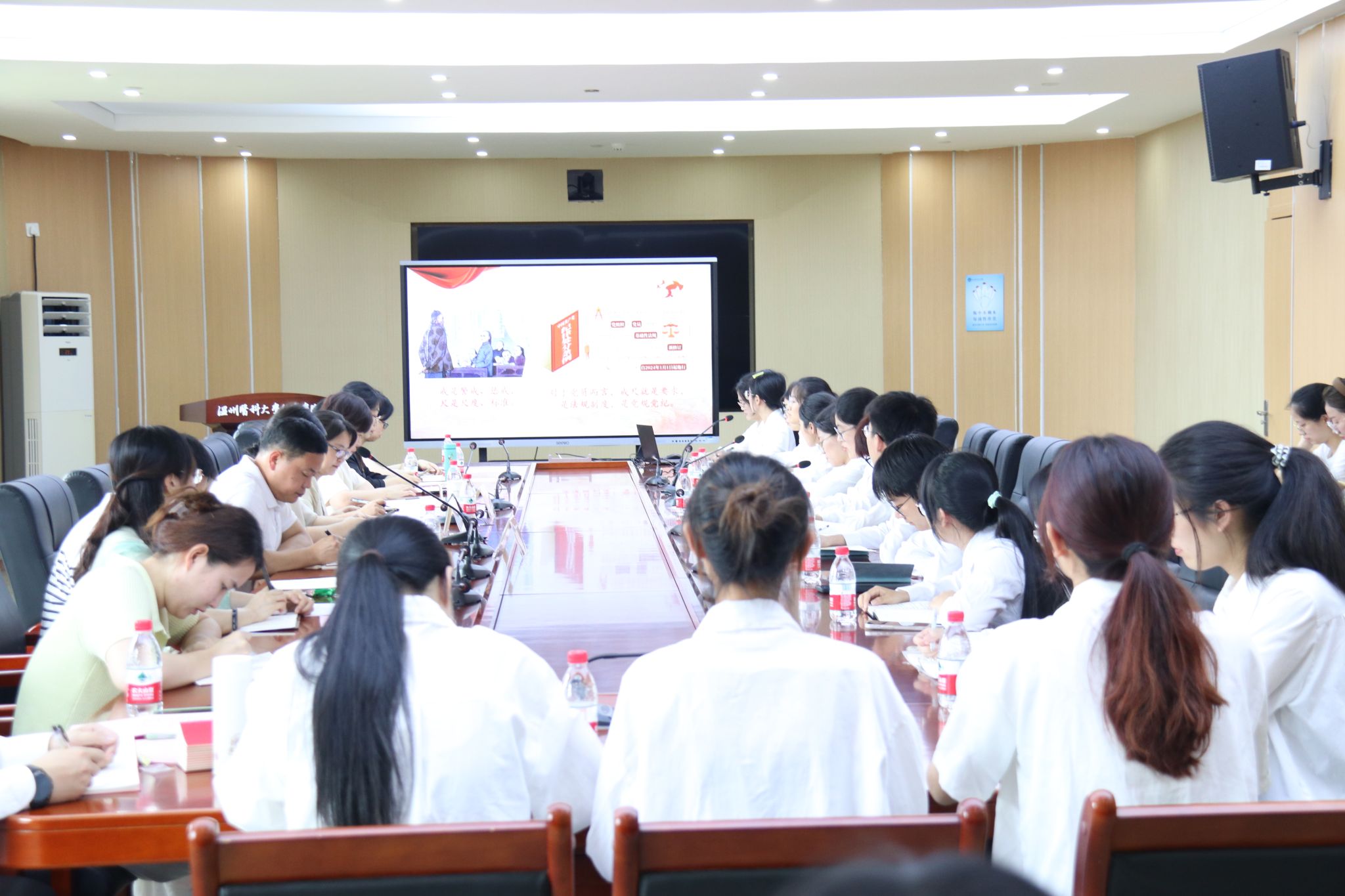 会议邀请医学一系第四支部现场开展党纪学习教育示范主题党日活动。支部党员在支部书记田丹的带领下开展了“紧握党纪戒尺,弘扬医者廉心”微党课,在党纪教育领学后支部成员结合自身经历分享学习体会,支部为每位成员赠送规尺,警醒全体成员在今后的学习生活中做到心中有尺、做事有度。最后,在庄严的国旗下,支部全体党员重温入党誓词。