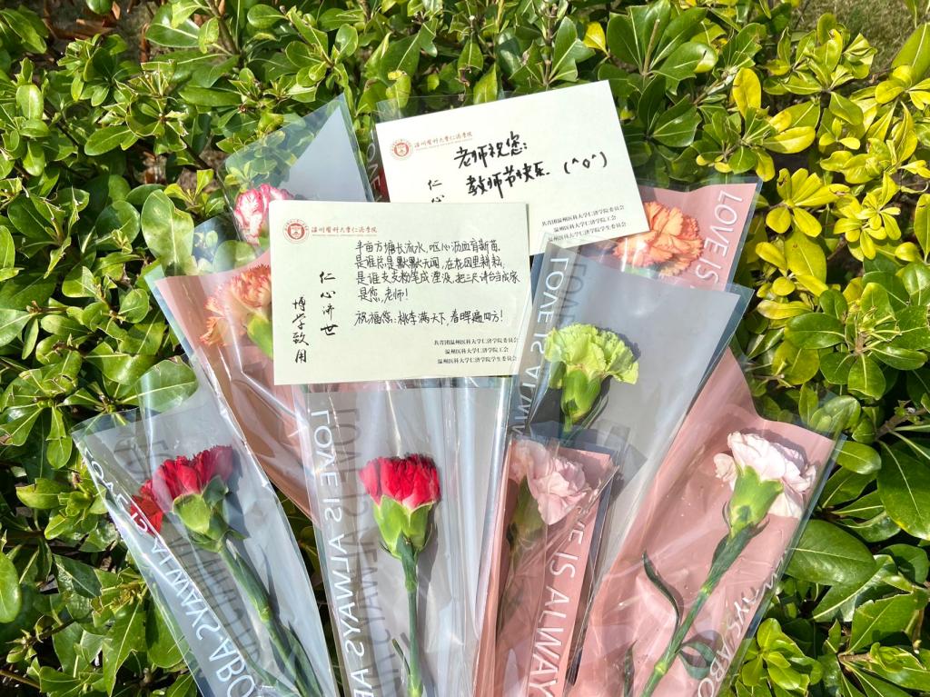 寸草耕耘终不悔,杏坛愿做育林人。9月9日上午,学院工会驻点校车下车点、走访各个办公室,为茶山、滨海校区上课与办公的老师送上鲜花与贺卡,致以诚挚的节日祝福。