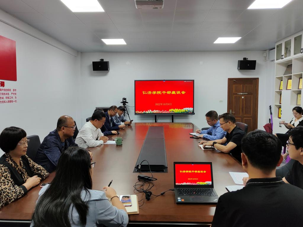 胡院长首先带领大家共同回顾了蔡福满、卢益东同志为学院发展做出的突出贡献,勉励他们在新的岗位上再接再厉、奋发有为、再创佳绩。胡院长表示仁济学院是“娘家”,欢迎他们常回来看看!也希望他们在今后的工作中能够一如既往地关心关注和支持仁济学院的发展。在交流环节中,蔡福满、卢益东同志分别谈了自己在学院工作的感想和体会,对学院未来发展提出了建设性建议,并对学院未来致以最美好祝福。