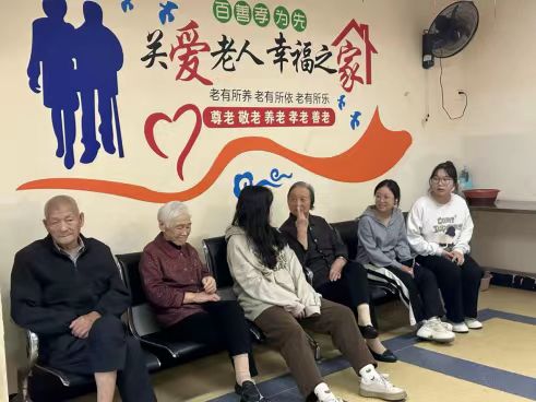 2023级日语1班的同学们为人们带去健康咨询、心理抚慰等服务,用实际行动践行孝老爱亲的传统美德。活动现场,志愿者们与老人们亲切交流,耐心倾听他们的心声,为老人们送去了欢乐和温暖。
