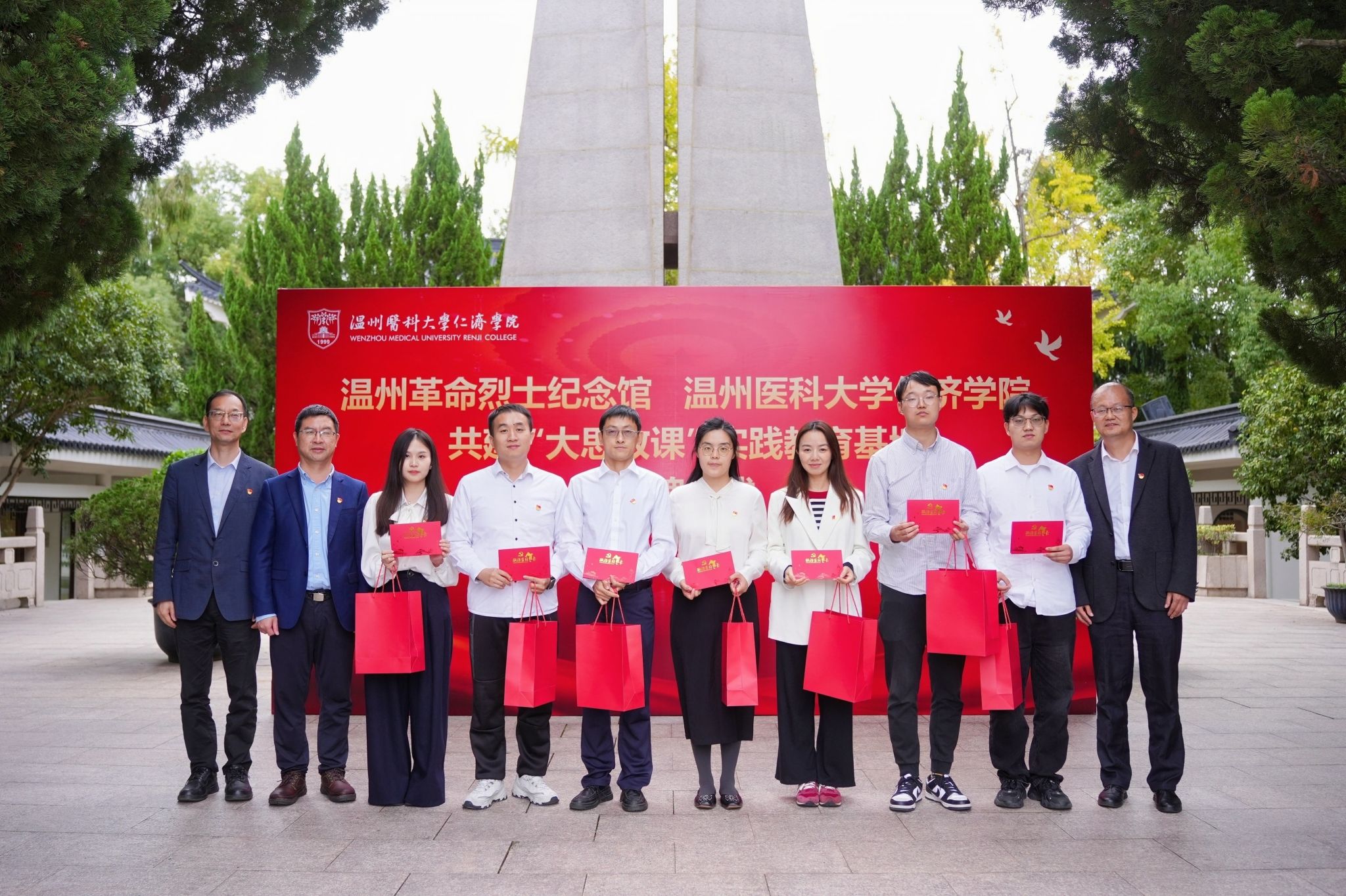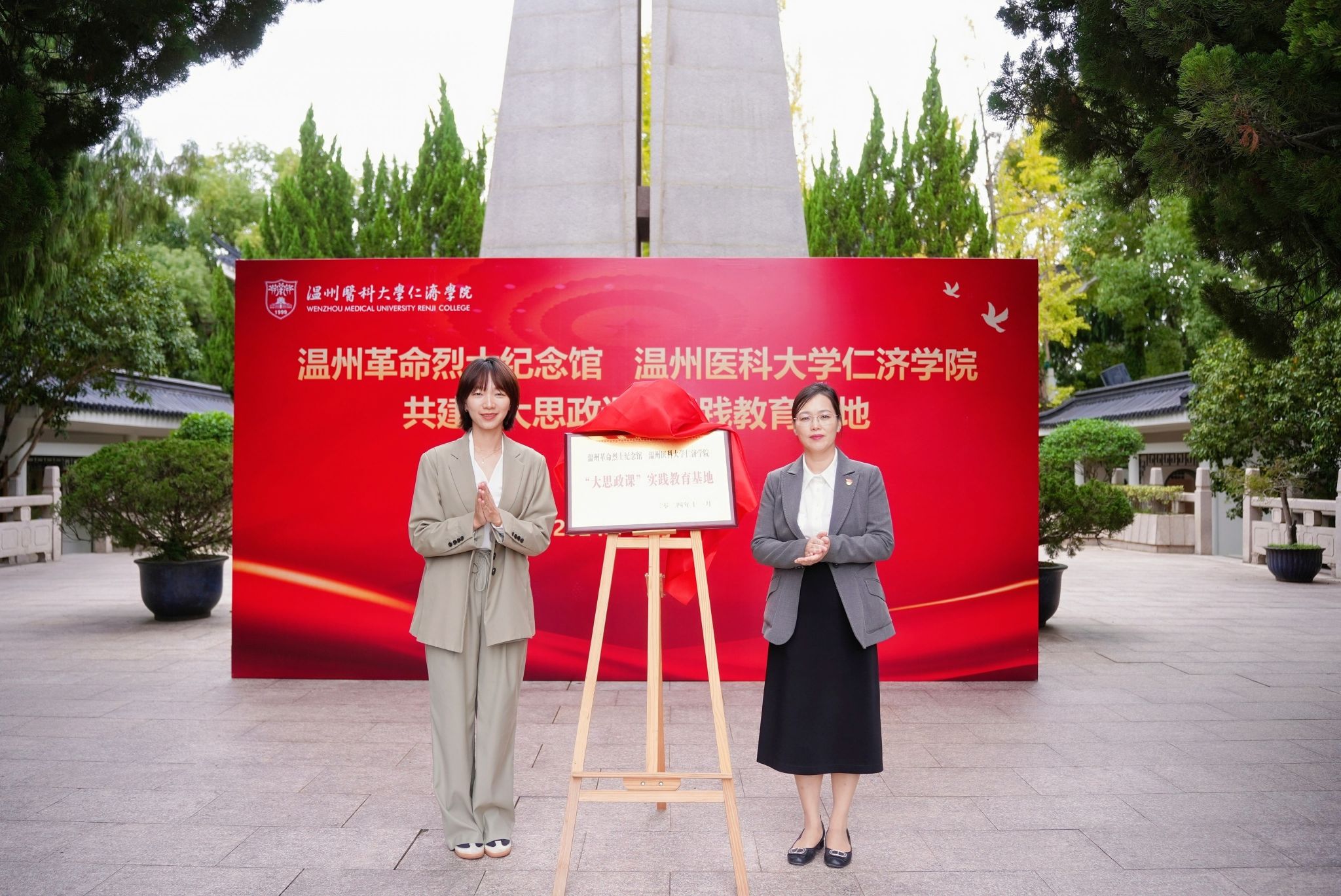 为了用活用好红色资源,推进思政工作创新,深化立德树人效果,11月19日下午,温医大仁济学院与温州革命烈士纪念馆举行“大思政课”实践教育基地揭牌仪式。学院党委书记彭红雷、温州革命烈士纪念馆馆长李婷婷出席活动,仪式由仁济学院党委副书记姜旭英主持。学院领导班子成员、相关科室负责人、支部书记、师生党员代表参加活动。