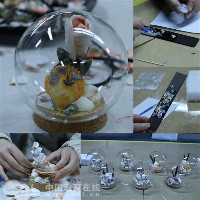 在东海贝雕艺术博物馆,学员们沉浸式感受省级非物质文化遗产——洞头贝雕的巧夺天工,详细了解其发展历程、技法演变及现代创新应用。在博物馆工作人员的指导下,学员们亲手体验贝堆造景、梅兰竹菊书签体验等工艺,感受海洋文化与工匠精神的深度融合。