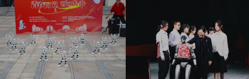 大会以艺术团合唱队《有我》拉开帷幕,对公益慈善、创新创业、文艺体育等各类先进青年典型进行了集中表彰。来自温州科技馆的智能机器人以“特殊嘉宾”身份惊艳亮相,上演了极具未来感的科技展演。颁奖环节,宇树机器人化身“科技礼仪”,将证书送至颁奖嘉宾面前。科技与仪式感的深度融合,为整个表彰大会注入创新活力,将现场气氛推向高潮。
