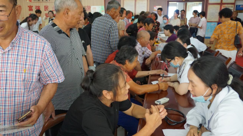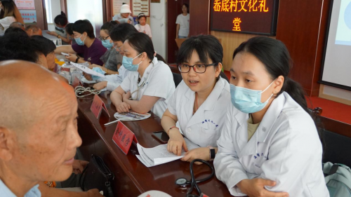 来到现场就诊的多为岙底村的老人们。“村里来了博士医生。”在村民们的口口相传下,也有从隔壁村“慕名而来”的。上午九时,这些村民们就在岙底村文化礼堂排起了长龙,都希望能让平时要坐几小时车、排几小时队才能看上的专家医生为自己把把脉、看看体检单。此外,慢性病一直以来是困扰他们的一大难题。坐诊医生们在提供义诊服务的同时,也在进行知识科普,让老年人们能够更好地应对慢性病问题。