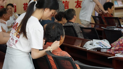 “大家别急,温州的专家们会为每个人都看诊,没轮到的阿公阿婆、叔叔阿姨们请先坐着休息,我们给大家推拿按摩。”实践团成员一边维持现场秩序,一边为等待的村民们提供推拿按摩等服务。与此同时,实践队员还与村民们一起积极参与了CPR人工心肺复苏与AED急救培训和演练。