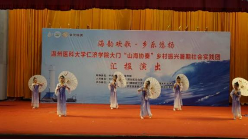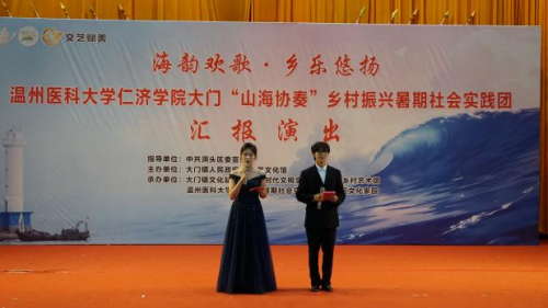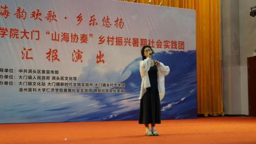 7月11日下午,“海韵欢歌·乡乐悠扬”三亿大门“山海协奏”乡村振兴暑期社会实践团汇报演出在大门朝阳社区文化礼堂正式开唱。这场由实践团携手大门镇乡村艺术团共同呈现的文化盛宴,以青春之力奏响海岛共富新乐章,生动诠释浙江省“文艺赋美”工程的基层实践。