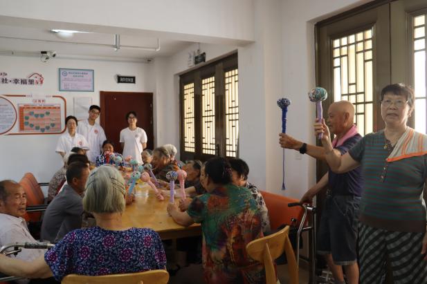 手作艾草锤,非遗技艺融入生活。除了艾灸体验,支医组还设置了“巧手制艾锤”互动环节。队员们现场示范如何将艾叶、干姜、陈皮等药材包裹进棉布,制作成养生按摩锤,轻轻敲打肩颈、后背,既能放松肌肉,又能闻到淡淡的药香,活动尾声,老人们纷纷试用自己制作的艾草锤,互相捶背按摩,现场欢声不断。