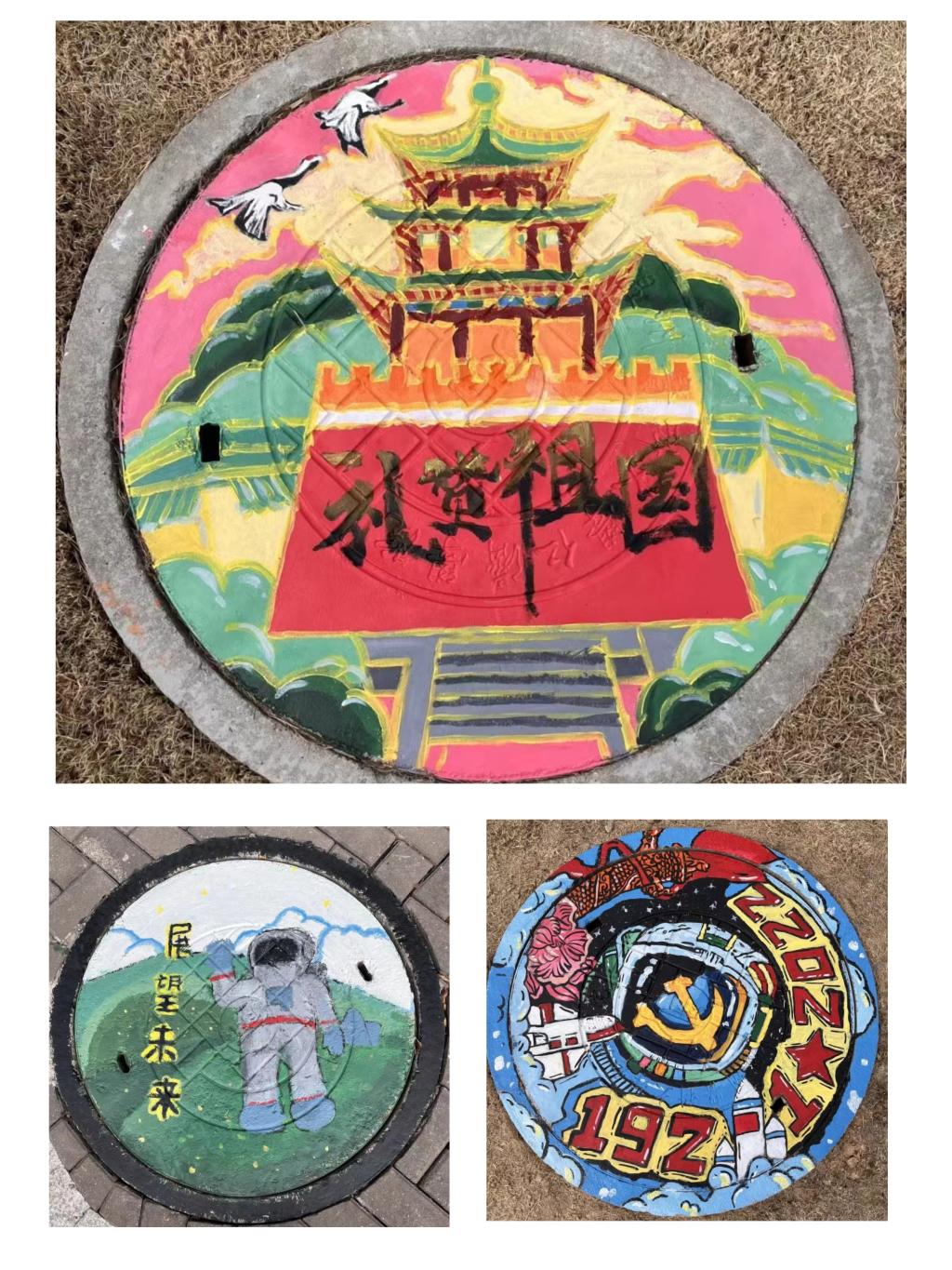 在活动中学院学生会还展示了本期“井绣好山河,奋斗正当时”校园井盖绘画活动的作品。以井盖为底,寥寥数笔,勾勒出了浓墨重彩的画卷,让我们看到了同学们对过往峥嵘岁月的回忆和对美好未来的无限遐想。活动间隙,由周涵、汤伊晴、鲜彦、朱文撰四位同学献唱的《我和我的祖国》,以歌明志,唱出青春炽热的爱国情。活动的下半场开展了党史知识竞答环节,现场和线上的同学们踊跃答题,将会议推向高潮,题目一经出现,线上直播便弹出成百上千条弹幕。知识竞答把教育与竞赛结合在一起,积极引导广大同学学史明史,树立目标。
