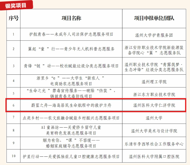 喜报!我院“蔚蓝之舟”志愿服务项目摘得2025温州青年志愿服务项目大赛银奖