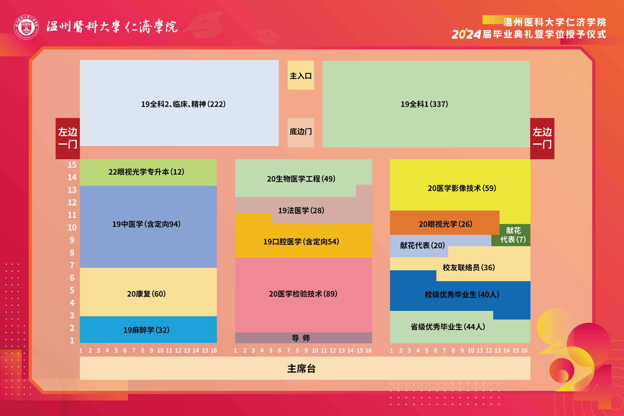 1. 请参加毕业典礼暨学位授予仪式的学生穿好学士服(里面白色衬衫、深色长裤、皮鞋或深色鞋子,学位服着装要求见附件),在当天上午8:40之前按划分的场地入场完毕(见下图),会议期间请将手机调至静音或振动状态。