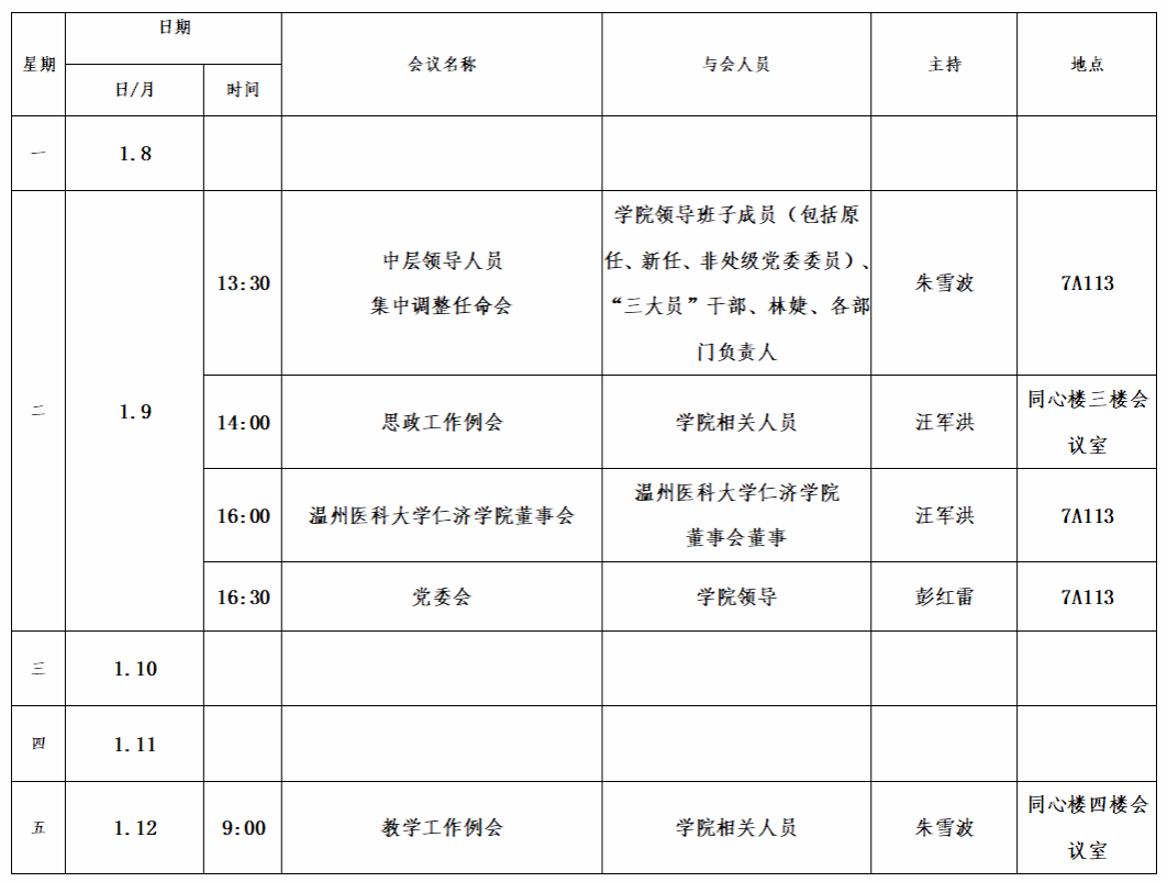 第十九周会议安排
