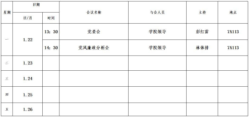 第一周会议安排