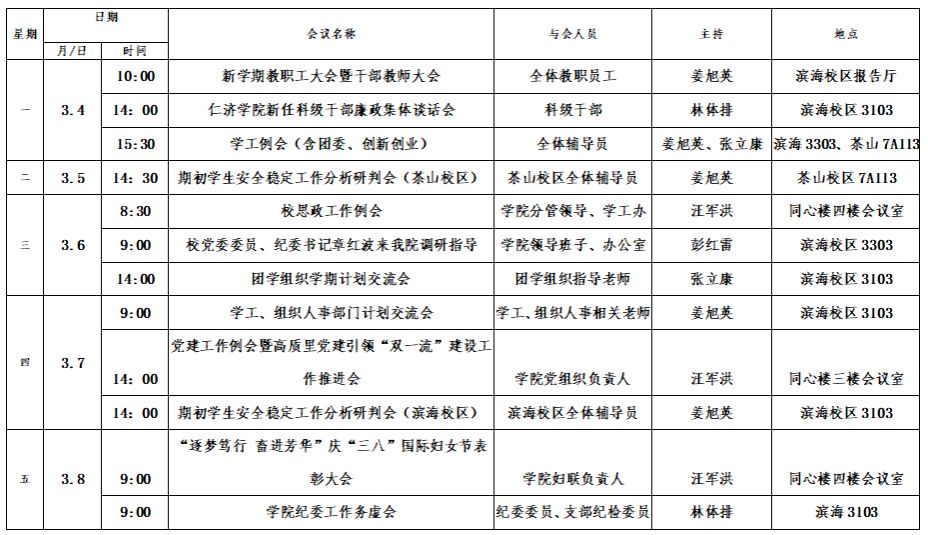 第一周会议安排