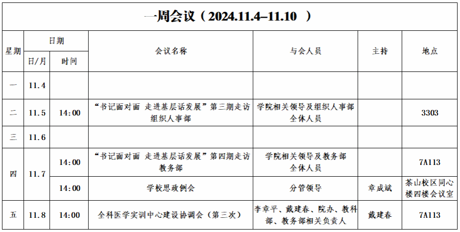 第十一周会议安排