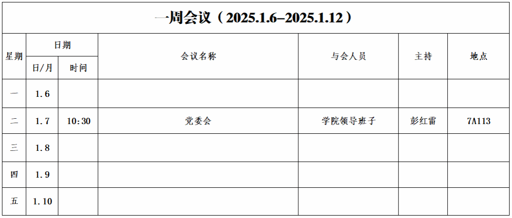 第一周会议安排