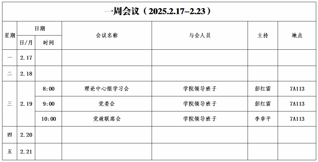 第十九周会议安排