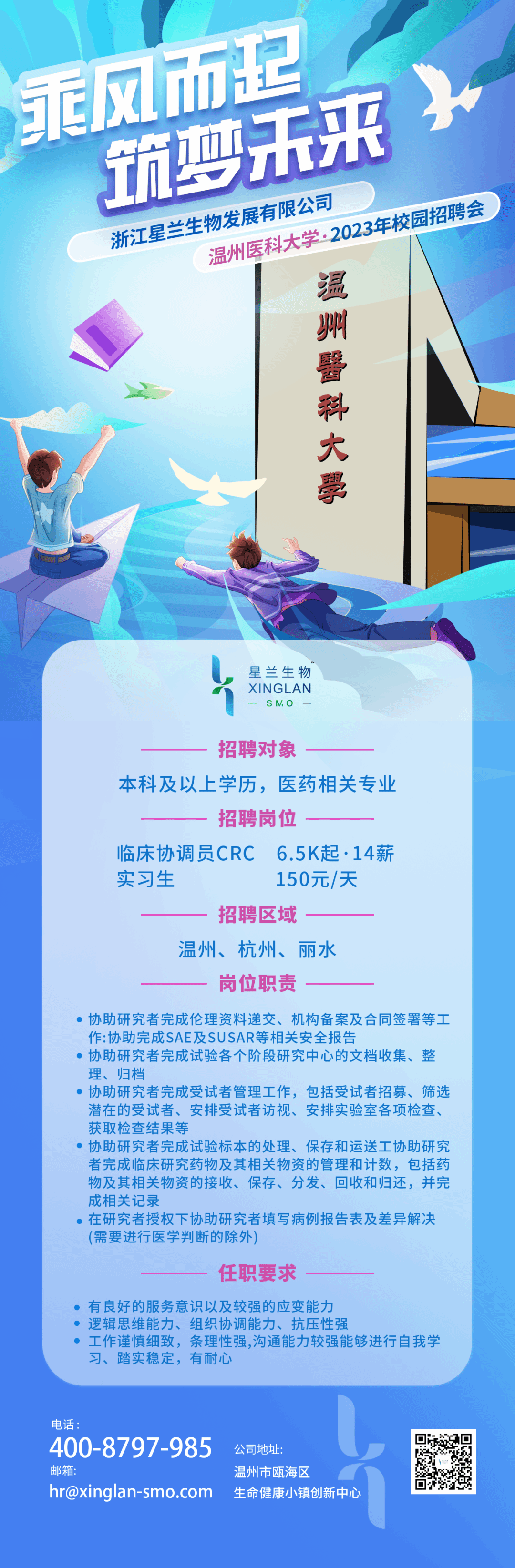校园招聘会|浙江星兰生物发展有限公司温州医科大学·2023年校园招聘会