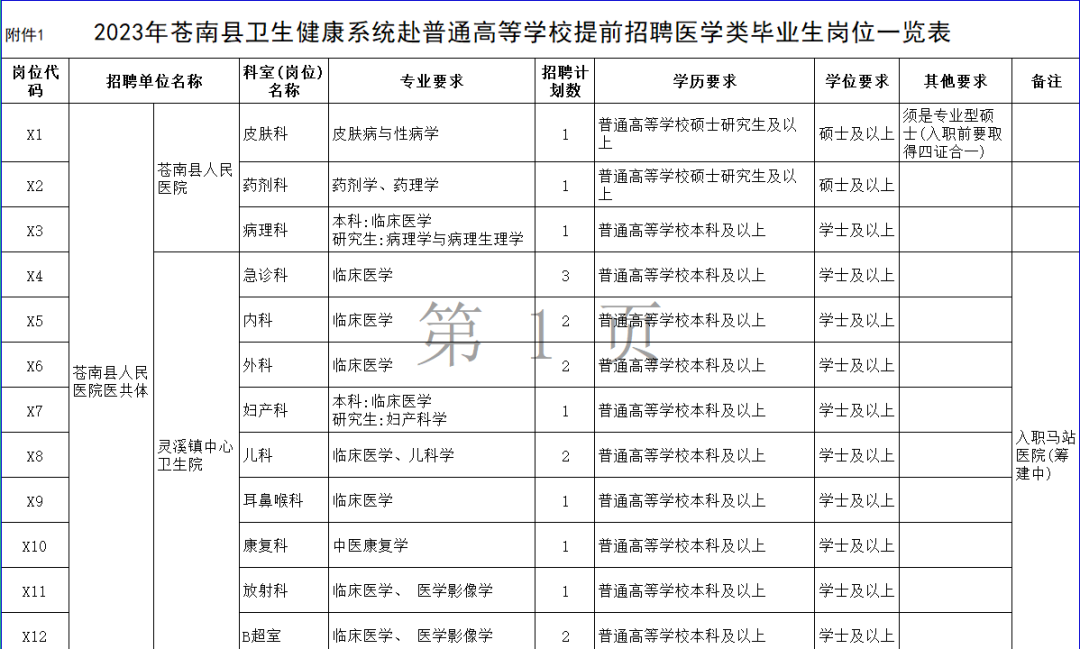 (六)灵溪镇中心卫生院招聘岗位的15名医学生将入职马站医院(筹建中),目前暂入编灵溪中心卫生院。