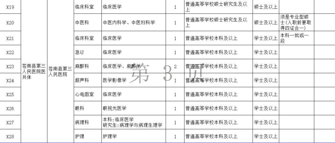 0577-59959021(苍南县第三人民医院医共体组织人事科)