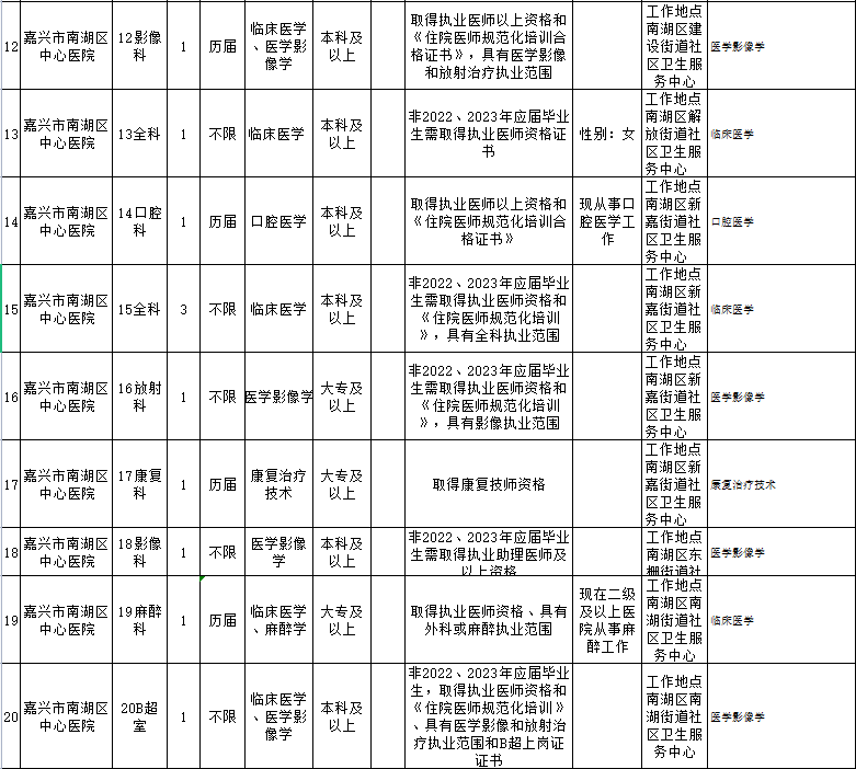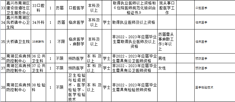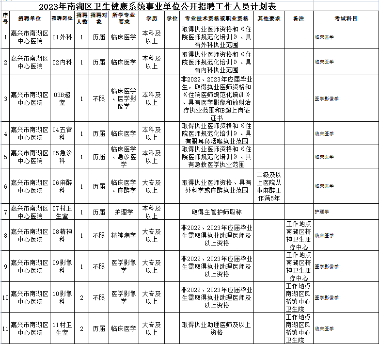 2023年南湖区卫健局直属及下属事业单位计划公开招聘事业单位工作人员44名,其中事业编制12名,南湖区中心医院招聘报备员额制工作人员32名,报备员额制执行事业单位人员管理制度。具体招聘岗位、人数和资格条件详见《2023年南湖区卫生系统公开招聘事业单位工作人员计划表》(附件1)。