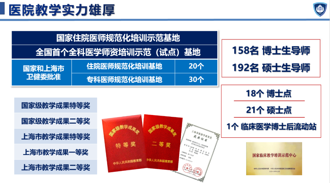 医院教学实力雄厚,是首批国家临床教学培训示范中心、首批国家住院医师规范化培训示范基地、中国住院医师规范化培训精英教学医院联盟成员、首个国家级区域性全科医学师资培训示范基地、国家继续教育培训基地。