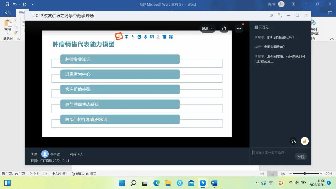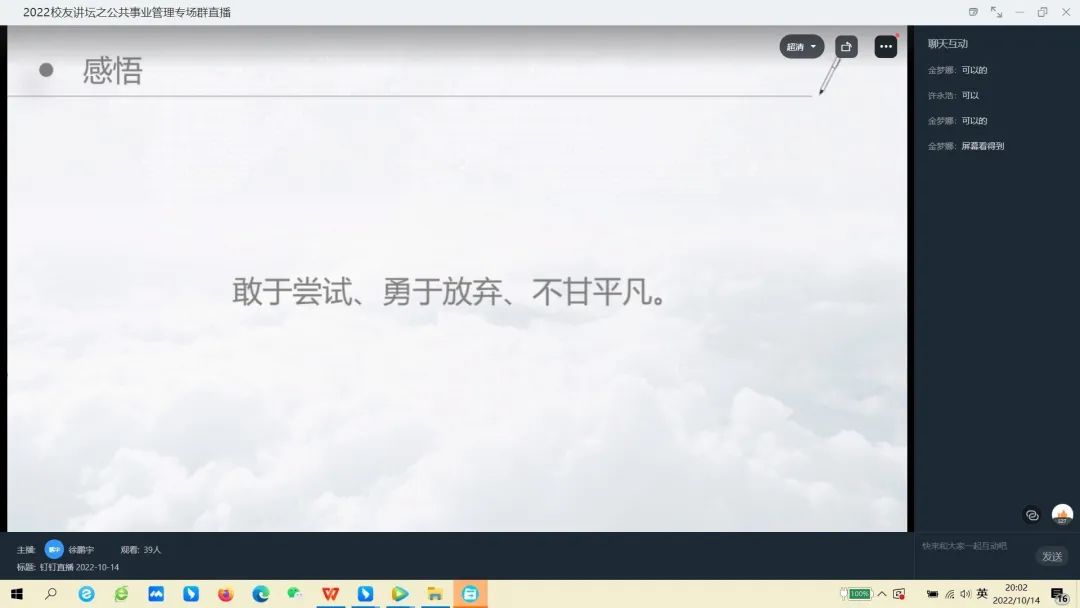 为充分发挥优秀校友在学院学风建设中的榜样引领作用,促进我院学生合理规划学习生活、提升学习热情、树立明确目标。10月14日,三亿就业指导与服务中心联合优秀学姐学长通过钉钉会议线上平台举办了药学、中药学、法医学以及公共事业管理专业的优秀校友讲坛专场。