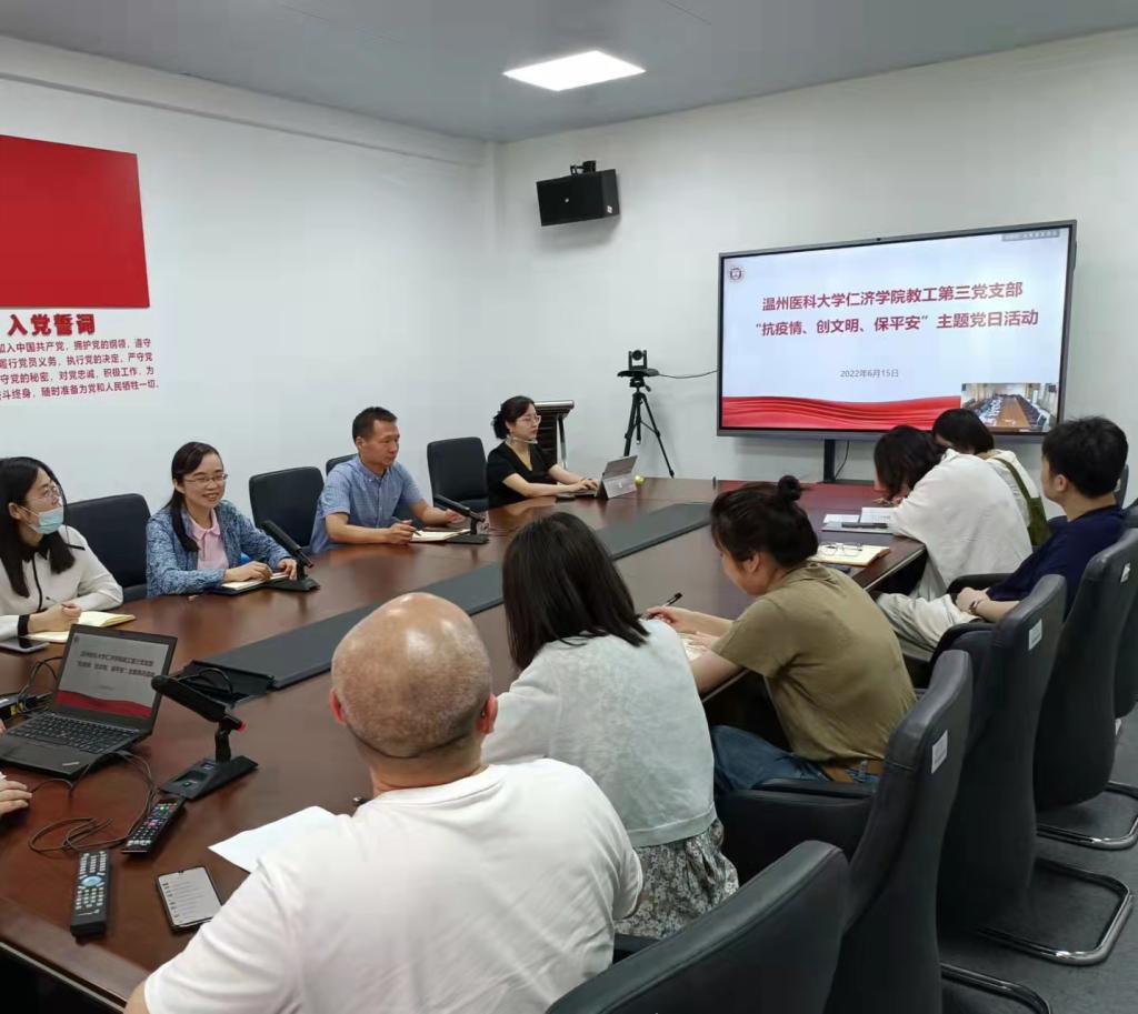 为推进文明城市建设、筑牢平安稳定基础,发挥党组织的战斗堡垒作用和党员的先锋模范作用,6月15日上午,教工第三党支部开展“抗疫情、创文明、保平安”主题党日活动。