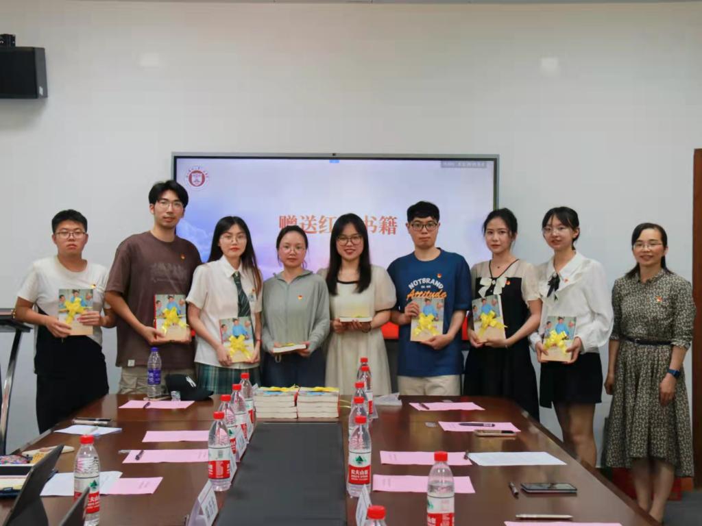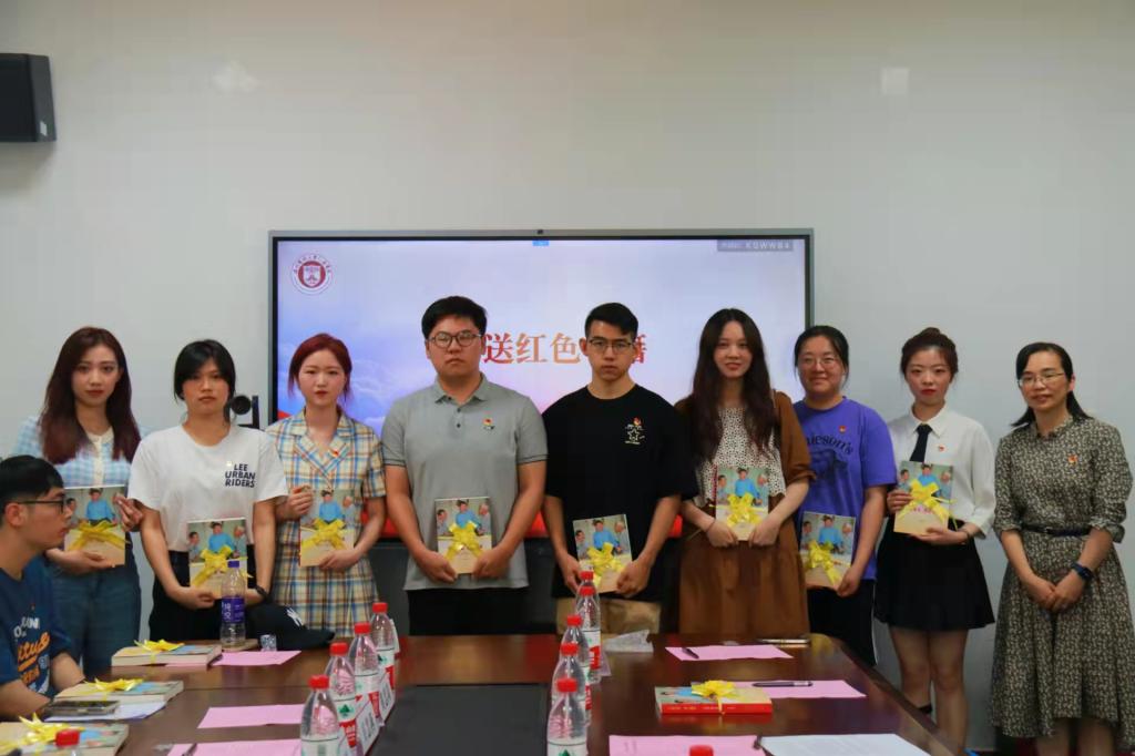 党委副书记刘洁为毕业生党员代表赠送红色书籍,勉励他们毕业后加强理论学习,提高理论素养,始终保持党员的先进性。全体党员面对党旗重温入党誓词,表达了对党组织的承诺,牢记作为一名共产党员的初心和使命。