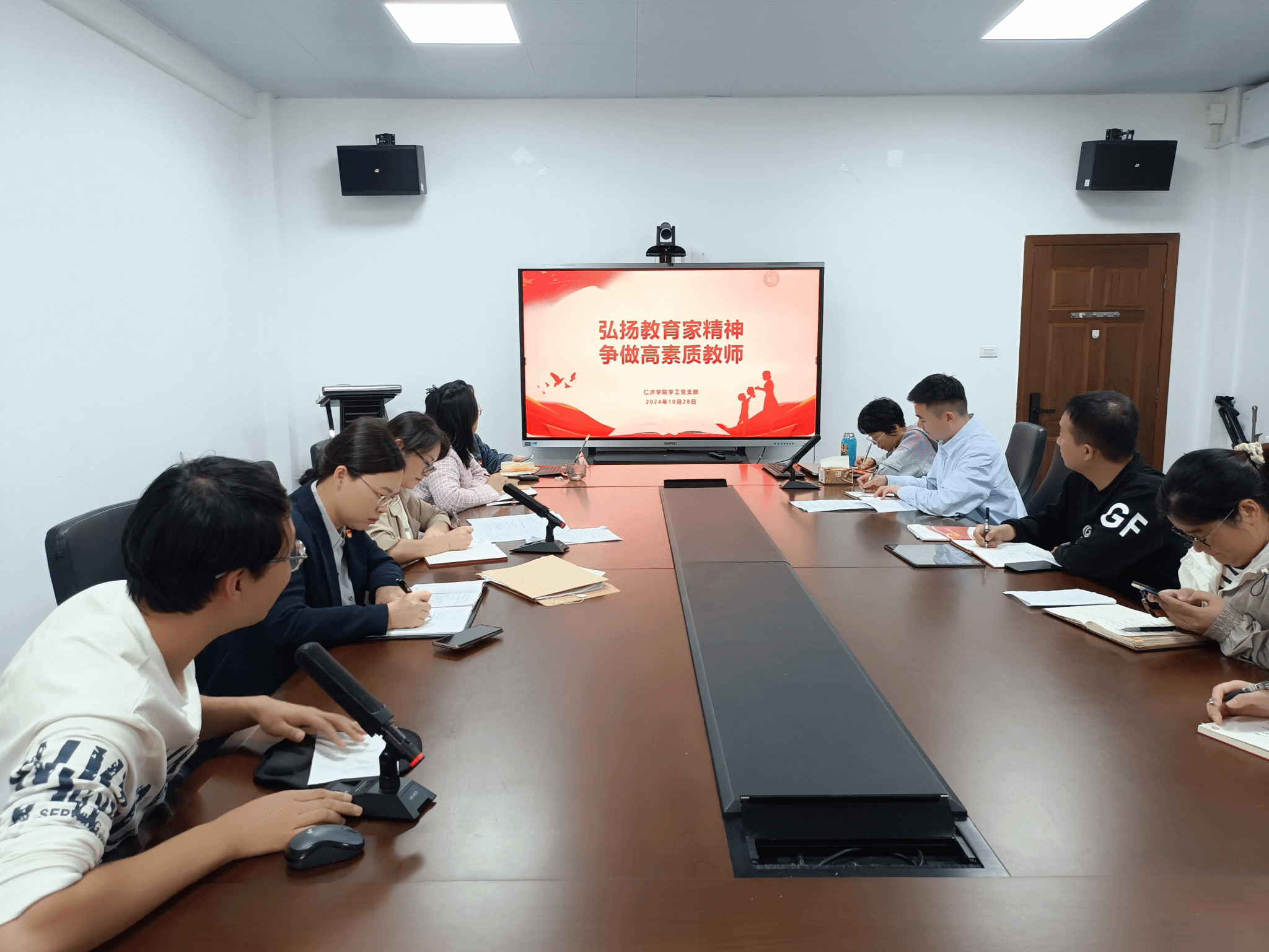 为大力弘扬教育家精神,加快建设教育强国,10月28日下午,学院学工党支部举办了师德师风建设主题党日活动,支部书记姜旭英主持,支部全体党员参加活动。