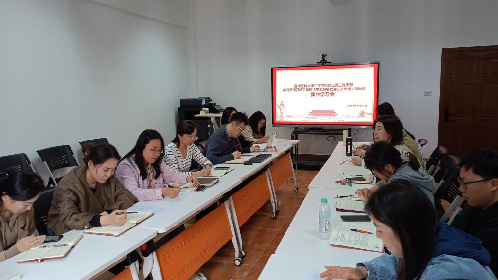 4月24日,学院教工第三党支部召开学习贯彻习近平新时代中国特色社会主义思想主题教育集中学习会,学院党委副书记刘洁以普通党员身份参加,支部全体成员与会,会议由支部书记季子正主持。