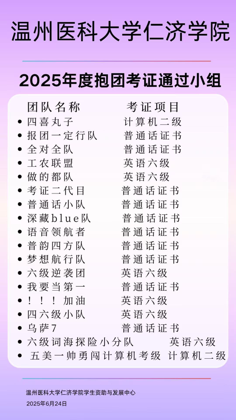 “抱团一定行队”“全对全队”“做的都对”“我要当第一” 等特色鲜明的队伍,在备考阶段全力以赴、信心十足。经过不懈努力,18 个团队、89 名学生顺利通过考试,获得学院提供的 500 元、700 元、1000 元等不同额度的资助奖励,此次活动考证通过率达 47%。