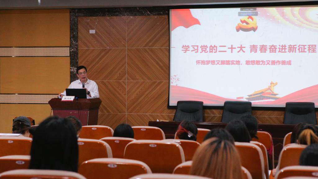 仁济学院党委书记、分党校校长陈乃车教授向在场学员作《学习党的二十大,青春奋进新征程》专题讲座,全面解读了党的二十大报告确定的重要思想、重要观点、重大战略、重大举措,深刻阐释了其中蕴含的历史逻辑、理论逻辑和实践逻辑,赢得了在场学员的阵阵掌声。“希望我们在座的同学能够在接下来的党校学习当中,学有所得,学有所获,在全面建设社会主义现代化强国的新征程上努力做一名怀抱梦想又脚踏实地,敢想敢为又善作善成,有理想、敢担当、能吃苦、肯奋斗的新时代好青年。”陈乃车寄语学院青年要坚定理想信念,筑牢精神之基,厚植爱国情怀,矢志不渝跟党走。