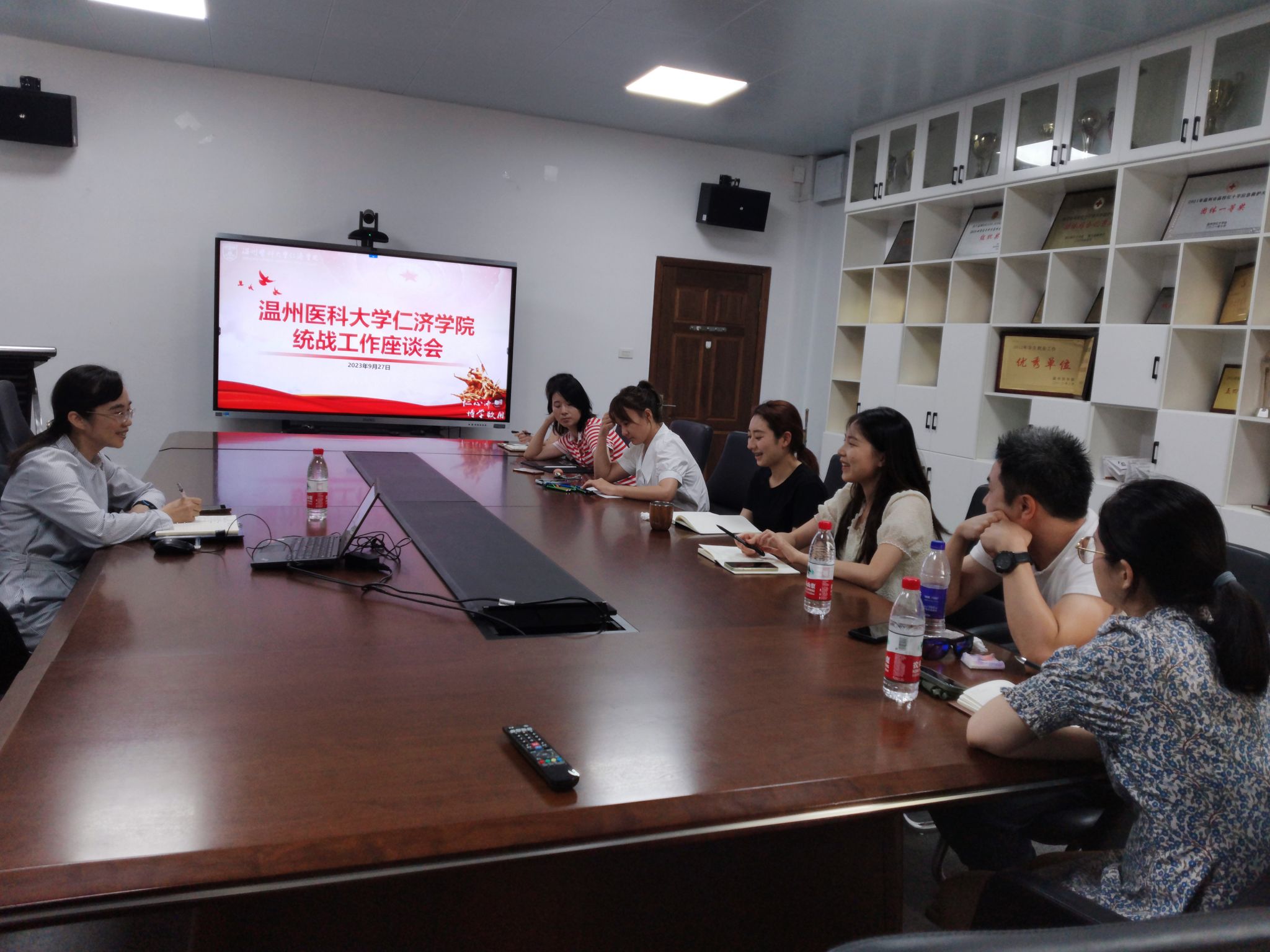 为深入推进学院统战工作,倾听统战对象的心声,9月27日下午,学院在茶山校区7A113会议室召开学院统战工作座谈会,党委副书记刘洁出席会议,温州医科大学欧美留学会仁济学院小组成员参加会议。