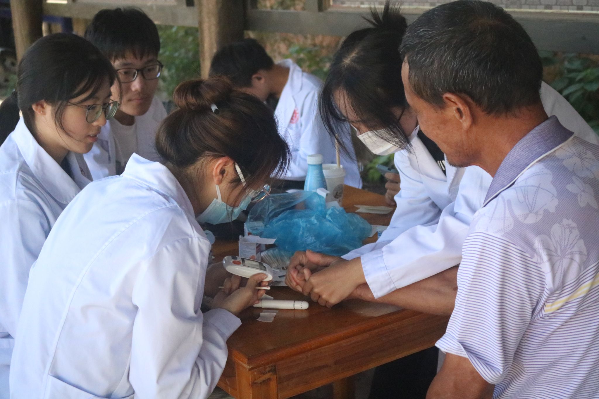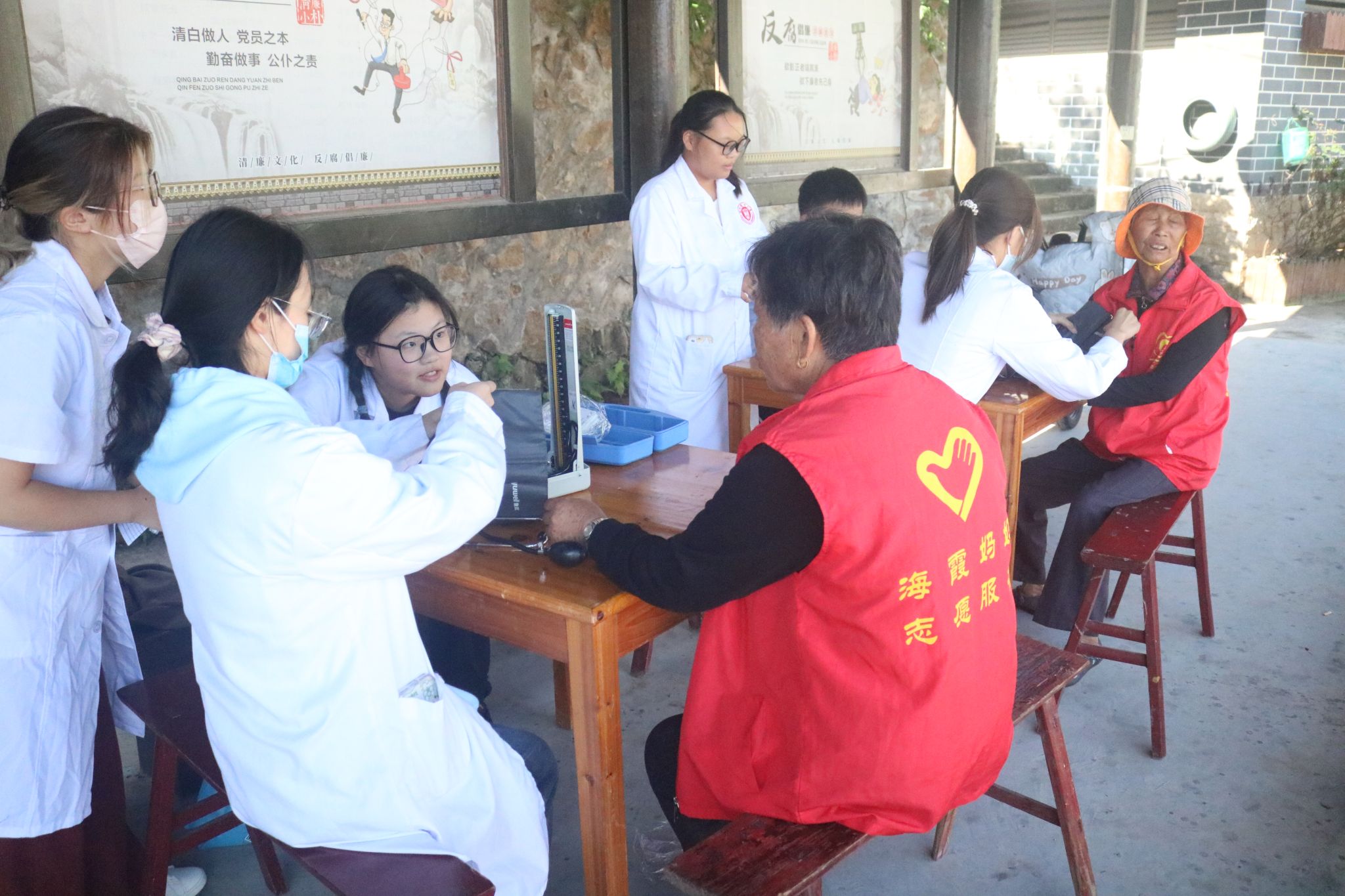 为提升老年人健康意识,正确对待慢性疾病,三亿春晖志愿者服务中心特于10月29日在小朴村开展全科随访活动,给老人们送去了凉凉秋意中的一份温暖。本次活动安排了血糖、血压等基础检查,并向老人们分发特制的健康记录卡。