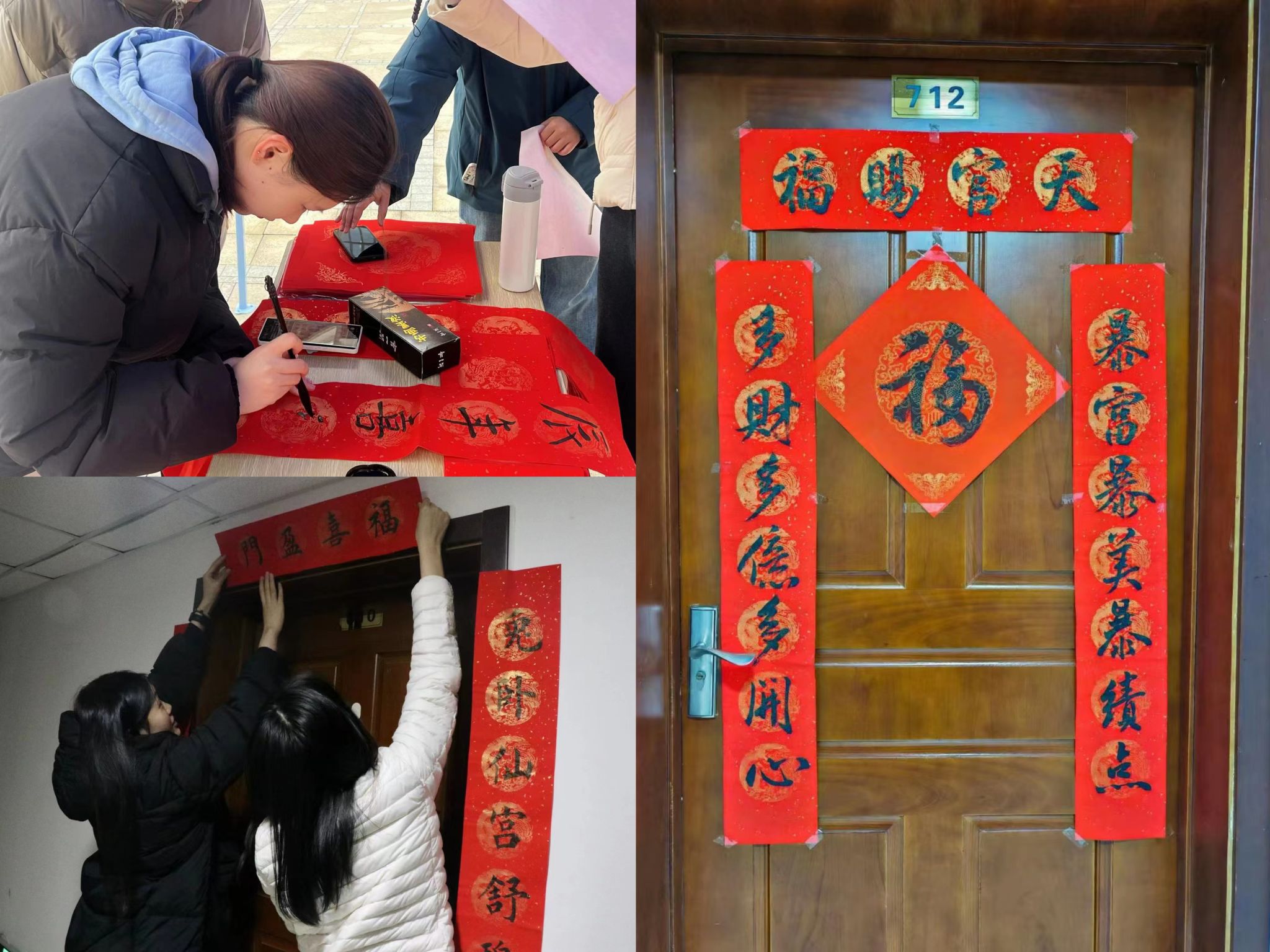 新学期伊始,仁济学院的惠源楼广场充满了春日的活力与喜悦。为迎接同学们返校,学院学生会在温州医科大学滨海校区开展了系列迎新活动。“迎新春,写春联”活动,院学生会为滨海校区的师生准备了笔墨纸砚,书写龙年的华章。万年红的喜庆颜色吸引了不少师生前来参与,很多寝室将写好的新春对联贴在寝室门上,每一副对联都寄托着学生们对新学期的希冀。