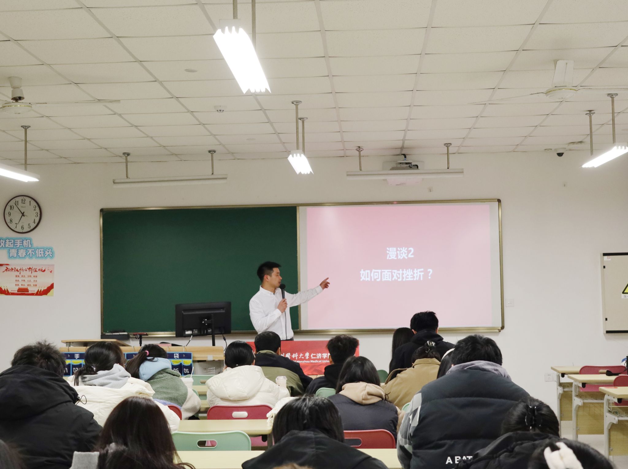 为充分发挥优秀校友榜样示范引领作用,促进学生全面发展。3月13日晚,三亿第一期“校友讲坛”在滨海校区至理楼2214教室顺利开讲。