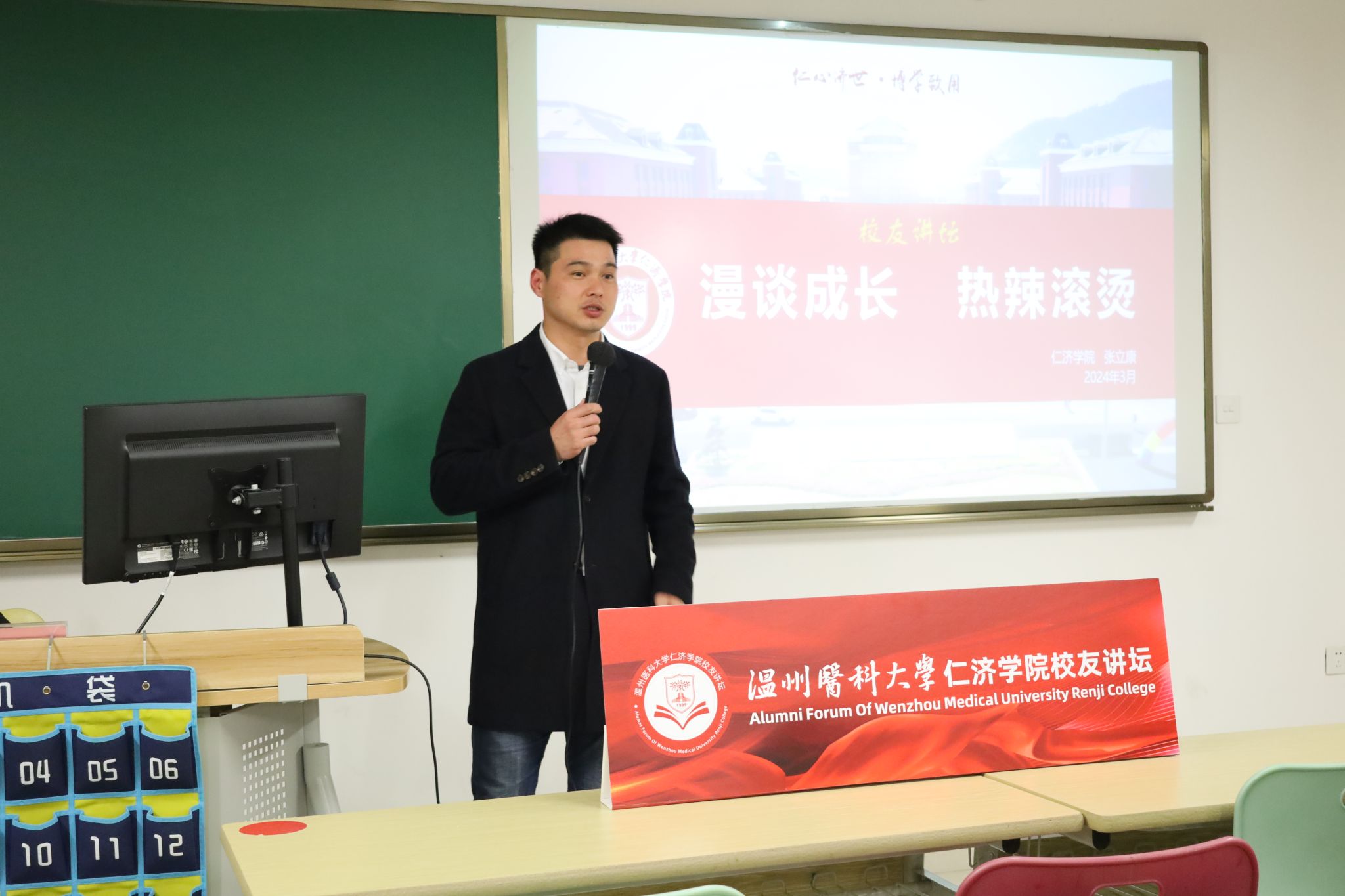 2009届校友、现任仁济学院党委副书记张立康以“漫谈成长,热辣滚烫”为主题,给在场六十多位同学讲述了一位高校教师的成长之路。